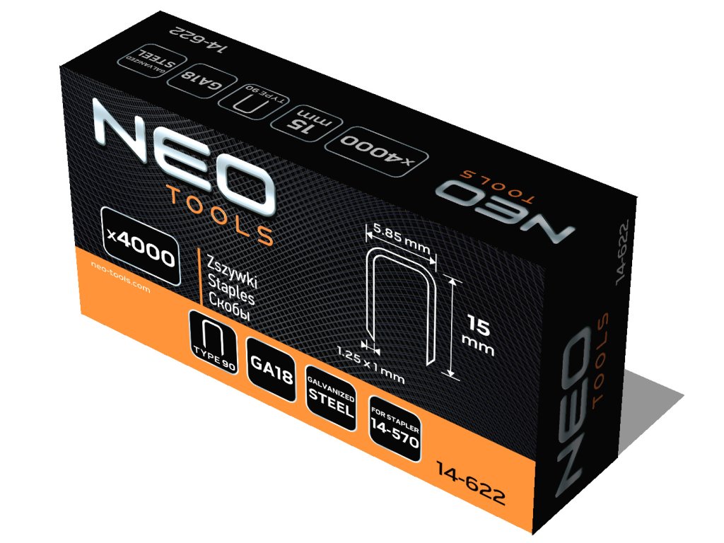 Pozinkované sponky pre pneumatické sponkovačky, GA18, typ 90 (4K), dĺžka 15 mm, 4000 kusov 14-622 od spoločnosti NEO sú sponky vyrobené z oceľového drôtu, pozinkované, odolné proti korózii. Sú určené pre pneumatické sponkovačky. Vyznačujú sa dĺžkou 15 mm, typ 90 (4K), GA18. Ponúkajú sa v súprave 4 000 kusov. Sponky odporúčané na všetky druhy prác s pneumatickými sponkovačkami. Budú vhodné na profesionálne použitie.