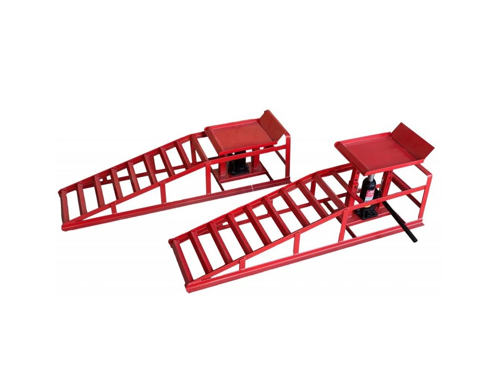 Nájazdové rampy s hydraulickými zdvihákmi majú nosnosť 4T (2t na jednu rampu), takže rampy využijete pri všetkých osobných automobiloch ale aj pri malých dodávkach. Výšku zdvihu automobilu si jednoducho upravíte podľa svojich preferencií, vďaka priloženým hydraulickým zdvihákom. Maximálna výška zdvihu je 390 mm. Rampy sú vhodné pre väčšinou automobilov, šírka nájazdovej plochy pre pneumatiky je 235 mm.