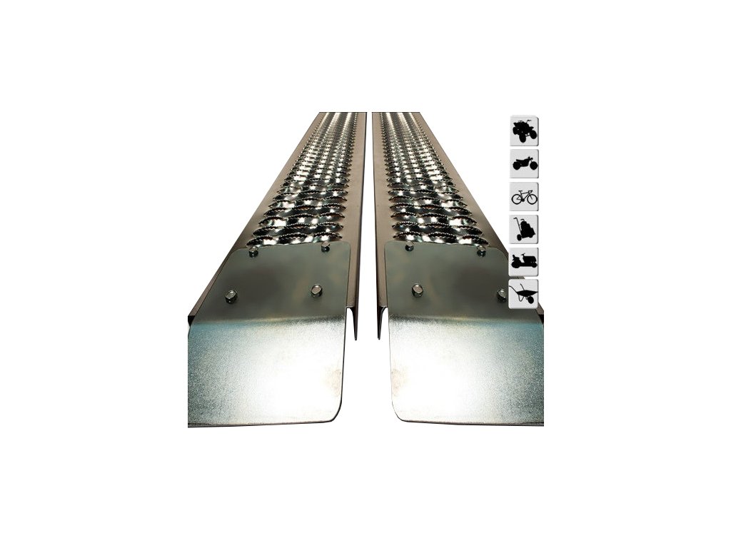 Stabilné nájazdové rampy z vysoko kvalitnej spracovanej ocele s dĺžkou 150 cm.