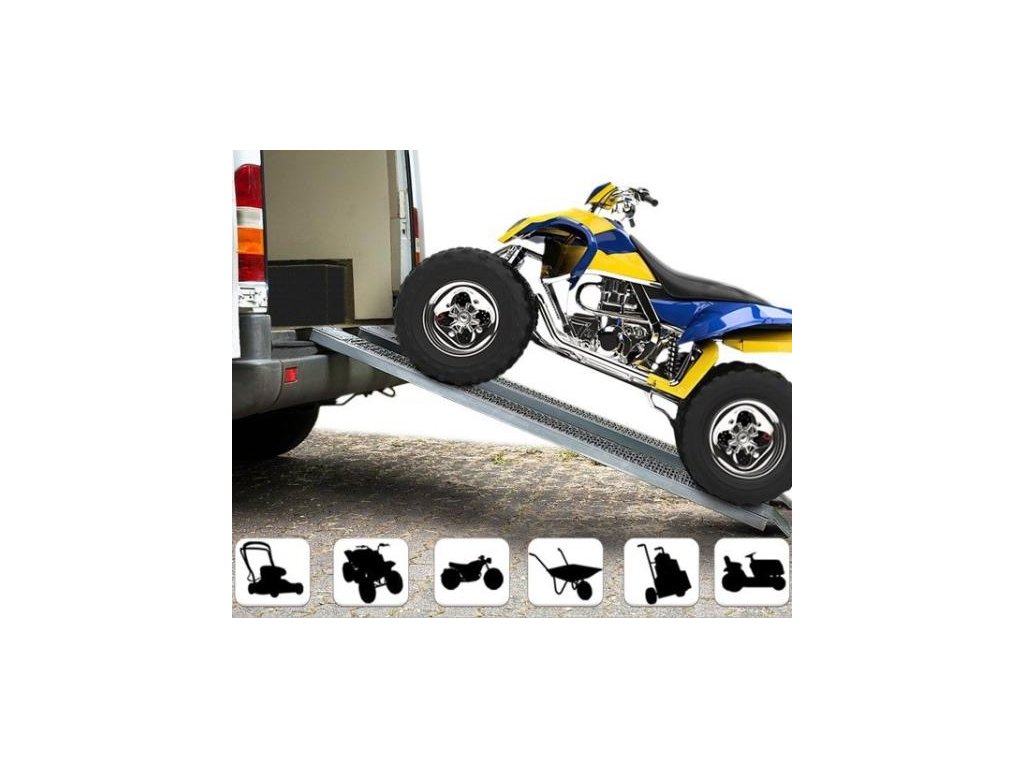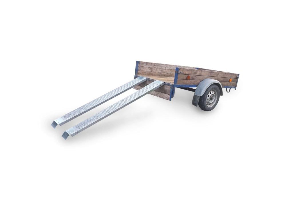 Nájazdové rampy sú ideálne na prenášanie stavebných strojov, menších automobilov, štvorkoliek, ale aj kosačiek na trávu. Maximálne zaťaženie jednej rampy je 200 kg, celkové zaťaženie na oboch rampách je 400 kg.