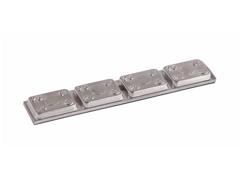 Univerzálne lepiace olovené závažie, 4 x 25 g. Balenie: 50 ks. Ideálne riešenie, ktoré zaručuje presné vyváženie zliatinových kolies dodávok, autobusov a nákladných áut.