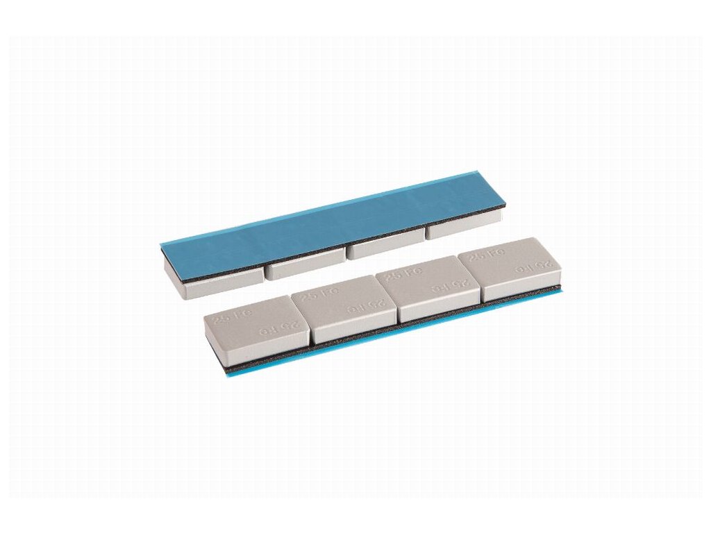 Univerzálne priľnavé oceľové závažie na kolieska, 4 x 25 g, sivá prášková farba. Balenie - 50 ks Ideálne riešenie, ktoré zaručuje presné vyváženie zliatinových kolies nákladných automobilov.