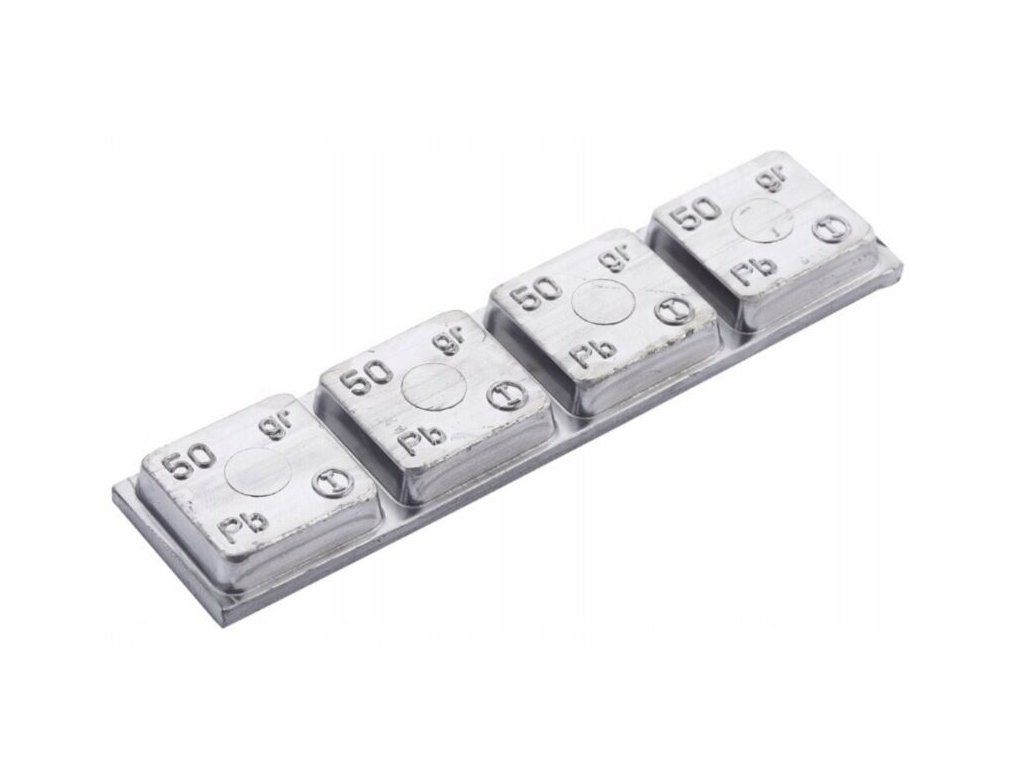 Univerzálne lepiace olovené závažie, 4 x 50 g. Balenie - 25 ks Ideálne riešenie, ktoré zaručuje presné vyváženie zliatinových kolies nákladných áut.