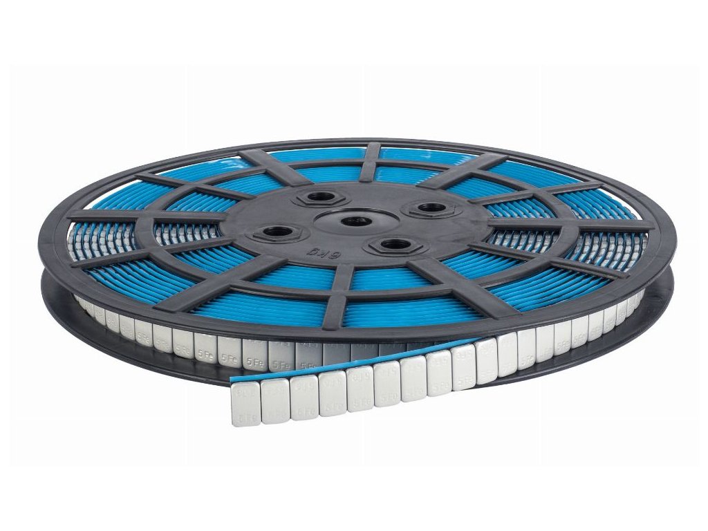 Oceľové nalepovacie kotúčové závažie, pozinkované, sivo lakované, na kotúči, typ SLIM, so širokou páskou. Hmotnosť rolky: 6 kg. Počet závaží kolies: 1200 x 5g. Balenie obsahuje 1 rolku. Ideálne riešenie, ktoré zaručuje presné vyváženie zliatinových diskov osobných automobilov.