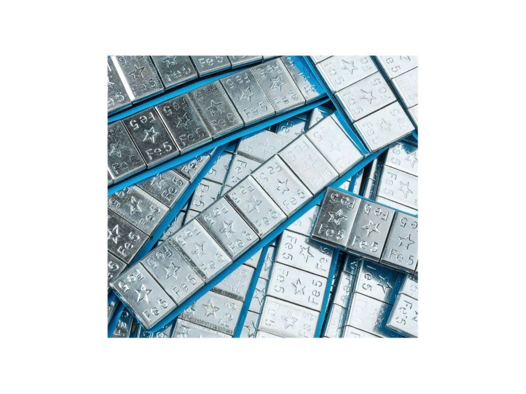 Chemické pozinkovanie chráni závažia pred koróziou a dodáva im lesk. Vyčnievajúce okraje modrej pásky uľahčujú odlepenie plášťa pre nalepením. Hmotnosť jedného pásika je 60g rozdelených po 12x5g, vďaka tomu jednoducho prispôsobíte hmotnosť požadovaným parametrom. Malé rozmery článkov zvyšujú pružnosť pásika. Výška závažia po nalepení je len 3,8mm. Nemusíte sa báť, že závažie odpadne. Silná lepiaca plocha pevne fixuje závažia k disku. Neexistuje prakticky žiadny spôsob, ako by závažia samé spadli z povrchu kolesa, dokonca aj na nerovných cestách! Na odstránenie závažia z povrchu ráfika musíte použiť špeciálnu škrabku.
