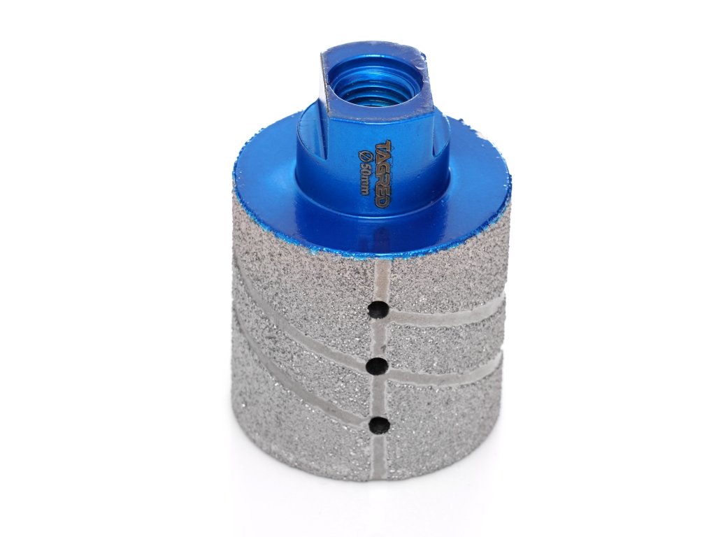 Diamantový fréza TAGRED sa používa na presné opracovanie materiálov ako keramika, kameň, gres. Pomáha im dodať jednotný vzhľad a odolnú hladkú štruktúru vonkajšej vrstvy. Vďaka priechodným otvorom sa počas práce nezanáša, na povrchu sú uložené malé častice priemyselných diamantov. Vysoko kvalitný odolný volfrámový náter zaisťuje dlhú životnosť a vynikajúcu účinnosť.
