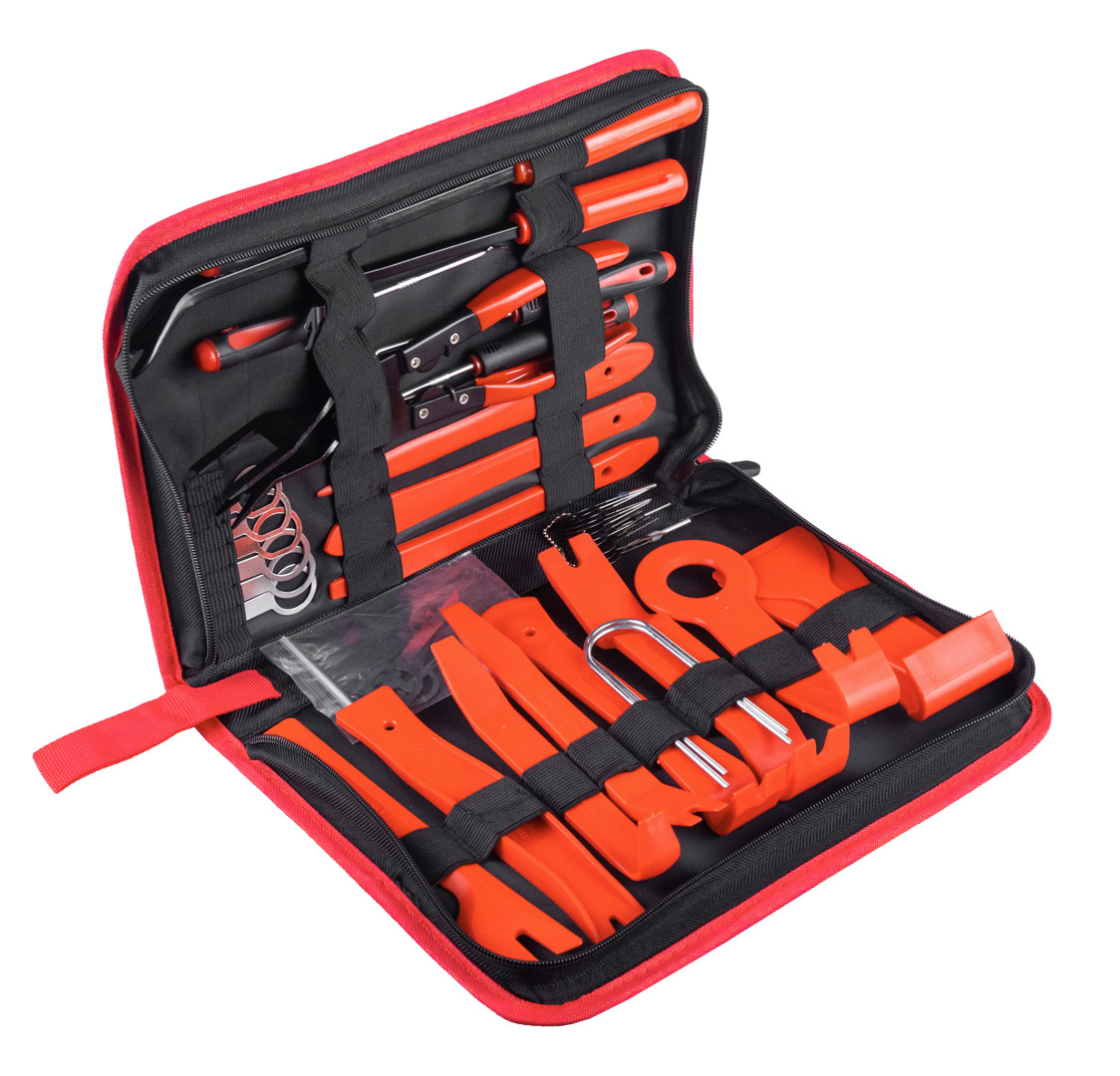 - Profesionálna sada na odstraňovanie čalúnenia a výliskov auta sa ľahko používa, navyše je odolná voči poškodeniu a zároveň znižuje riziko poškodenia a poškriabania čalúnenia a lakovaných prvkov.