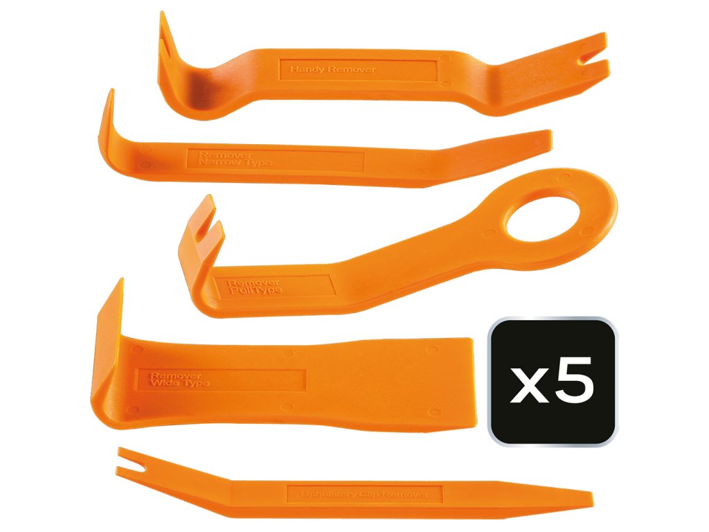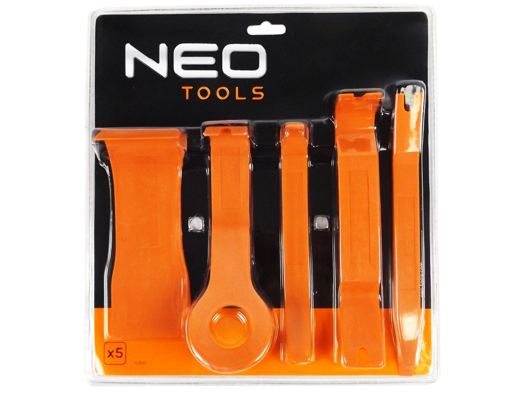 Sada sťahovákov na čalúnenie, 5 ks. 11-822 od spoločnosti NEO je súprava kvalitného príslušenstva vyrobená z nylonu. Určená na odstraňovanie čalúnenia a obloženia automobilov. Nespôsobuje poškriabanie - aj na lakovaných dieloch. Sada sťahovákov na čalúnenie NEO bude v autoservisoch nepostrádateľná.