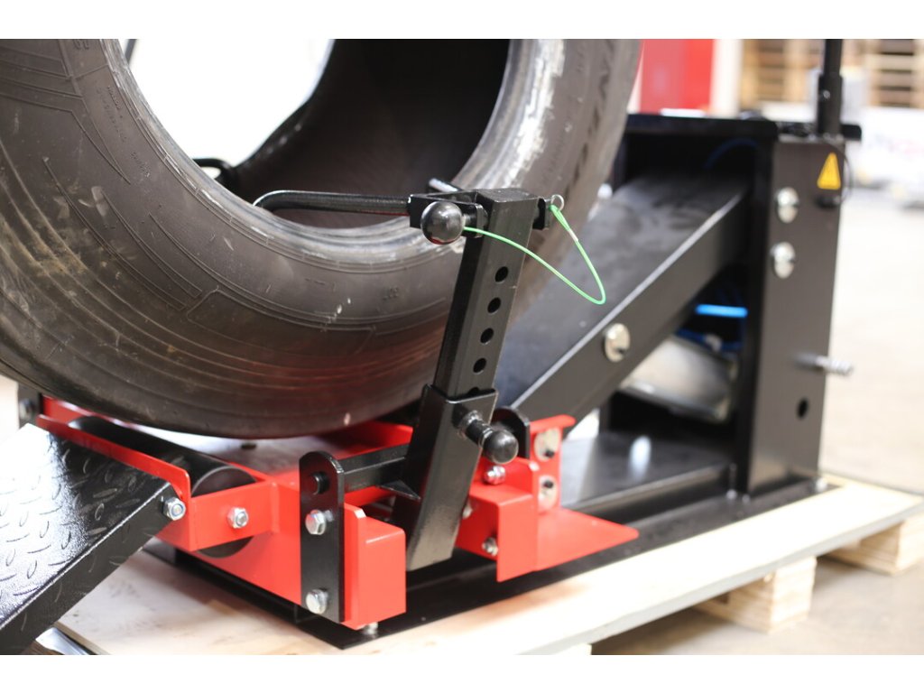 - Narolujte pneumatiku, ktorú chcete opraviť, na zdvíhacie rameno s rotujúcimi valčekmi.
