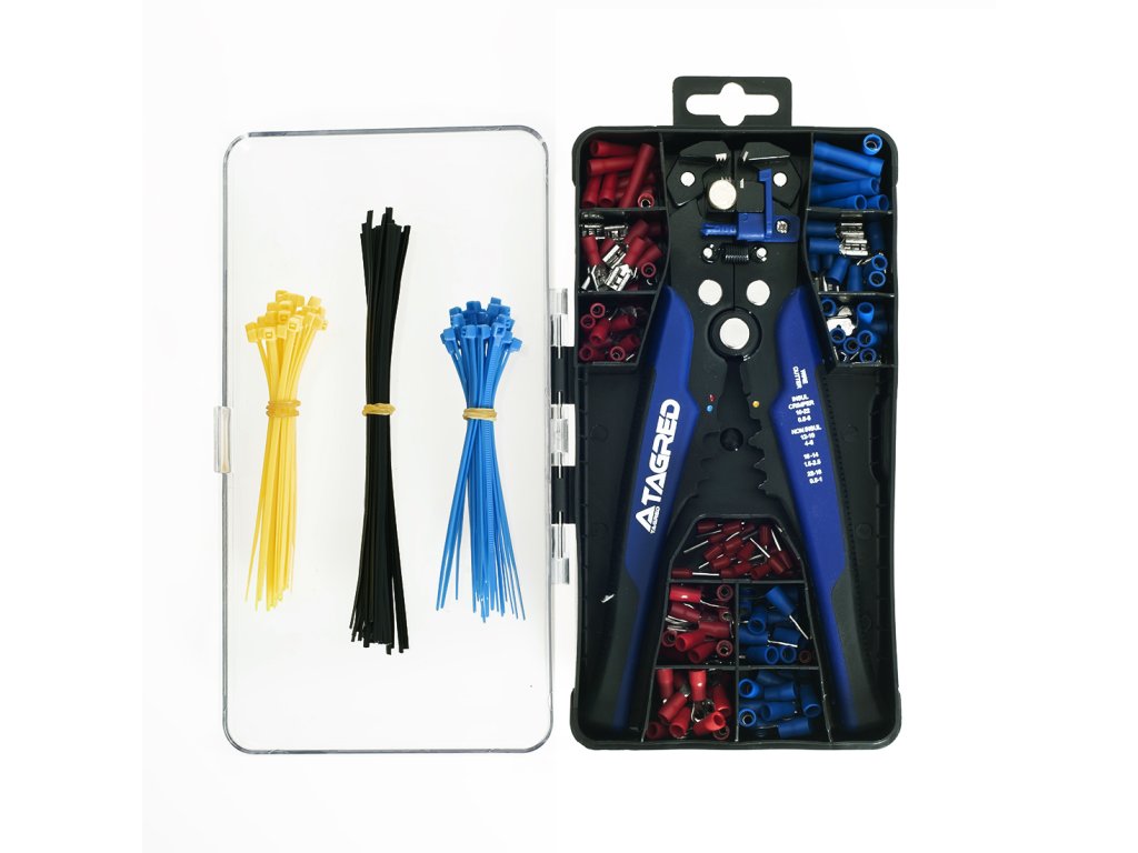Automatický odizolovač – kliešte na odstraňovanie izolácie z jednožilových a viaczžilových káblov. Ideálny pre káble s hrúbkou od 10 AWG do 24 AWG (0,2~6,0 mm2). Profesionálny odizolovač pre odborníkov a hobby elektronikov. Súprava obsahuje 200 elektrických koncoviek, 60 svoriek (3 druhy po 20 ks) a praktický triedič.