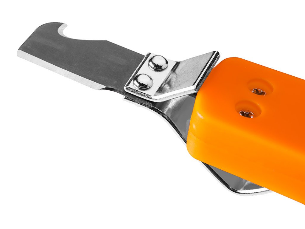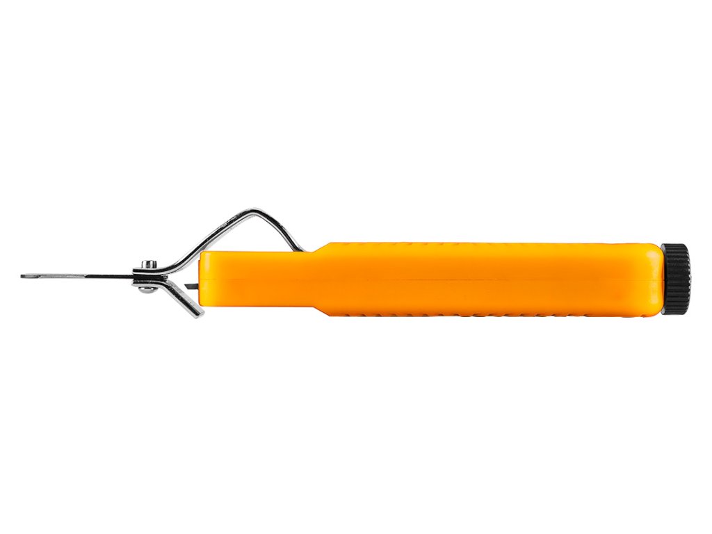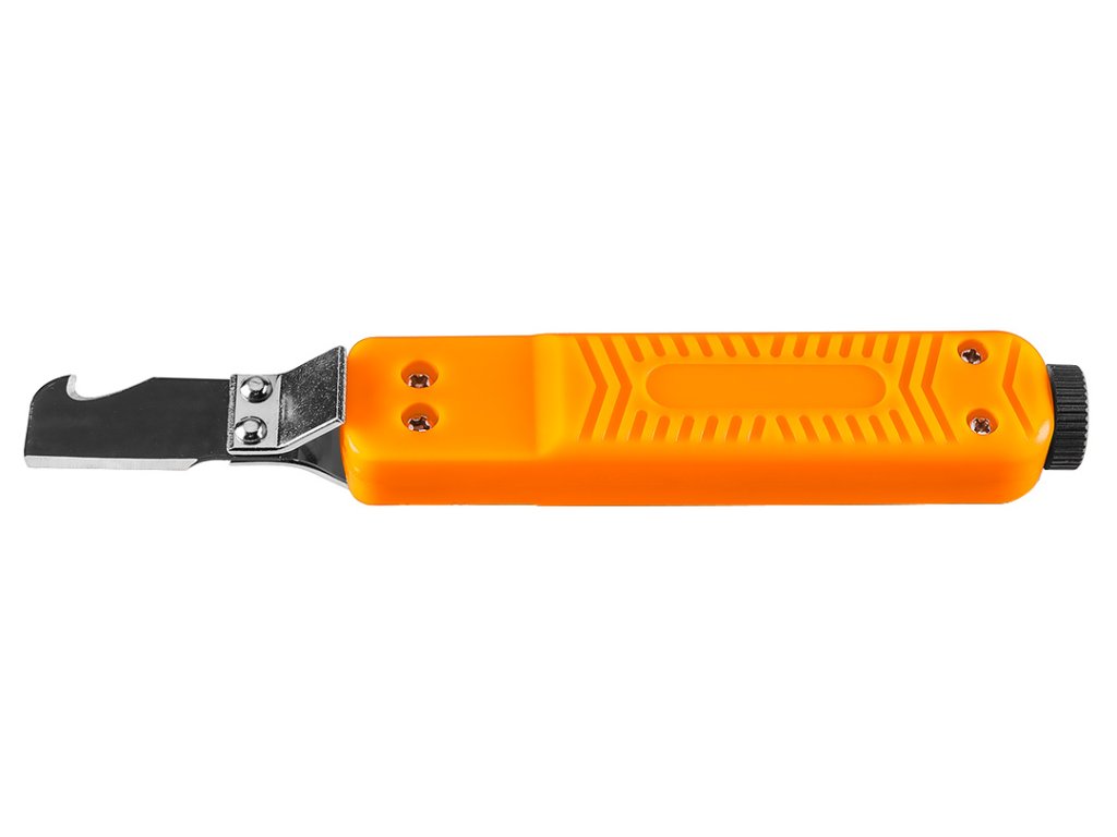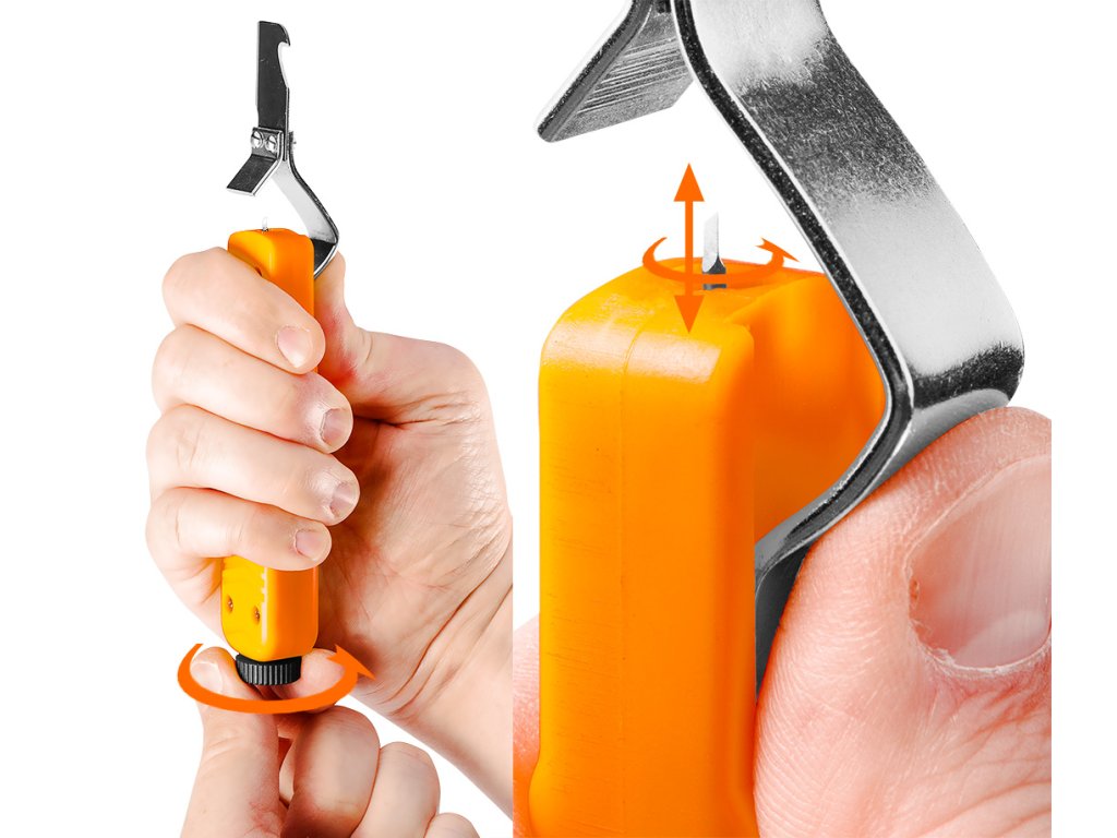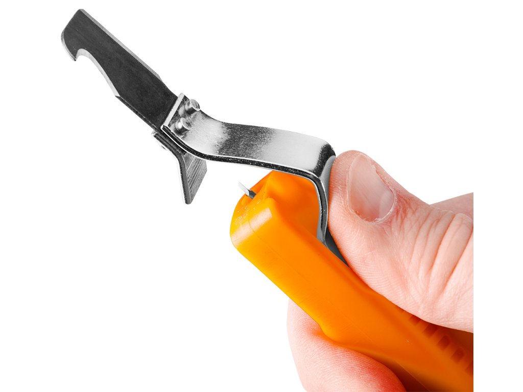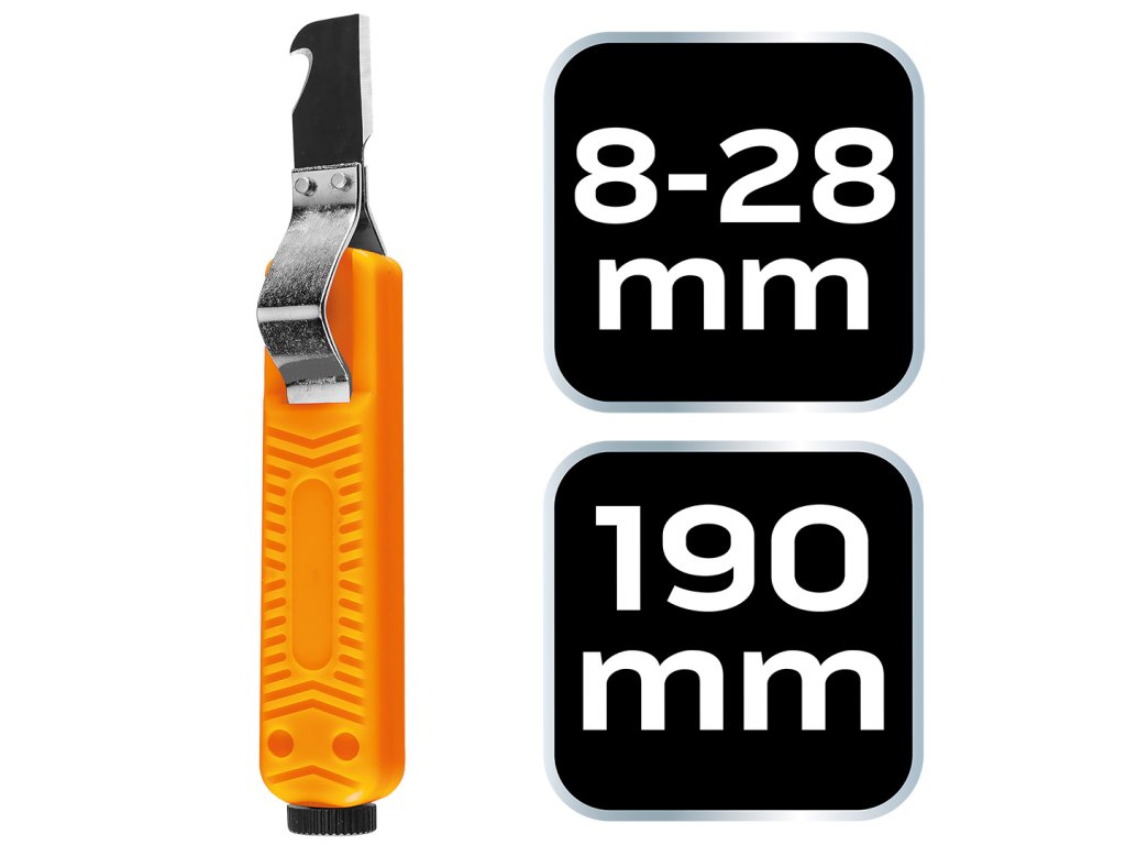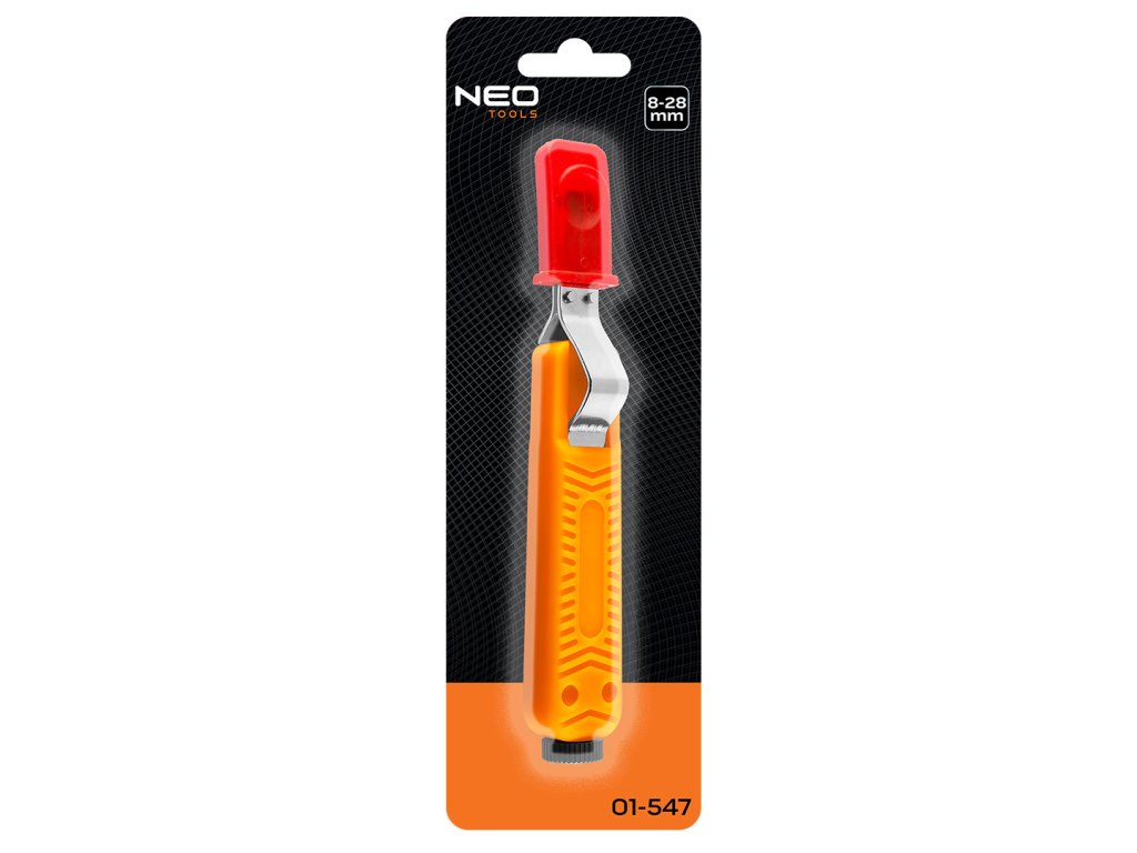 Odstraňovač izolácie drôtov s háčikom 01-547 od spoločnosti NEO TOOLS je nástroj s háčikom na drôty od 8 do 28 mm2. Jeho dĺžka je 180 mm. Telo odizolovača NEO TOOLS je vyrobené z odolného plastu. Nástroj má predlžovaciu svorku na káble. Vďaka svojej hmotnosti 100 g je sťahovák ľahký a praktický. K jeho bezpečnému skladovaniu prispieva kryt čepele. Odstraňovač izolácie káblov NEO TOOLS je výrobok vybavený hákom, ktorý sa osvedčí pri mnohých náročných úlohách spojených s prácou s elektrickým prúdom.