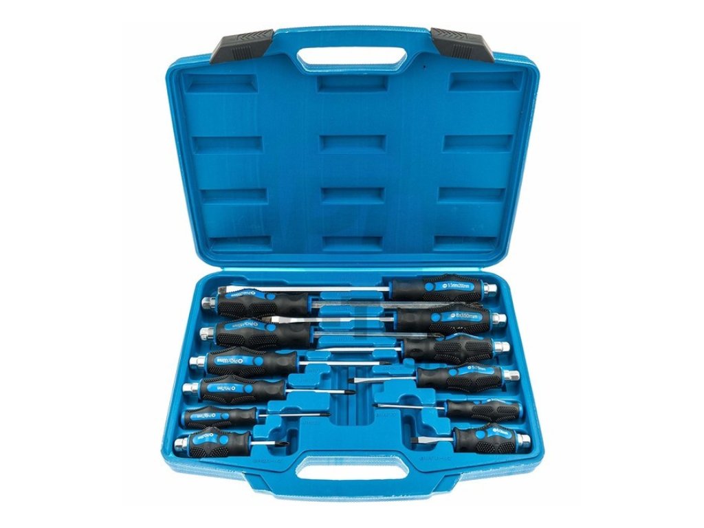 Sada úderových sktrutkovačov. Obsahuje 12 kusov plochých a krížových skrutkovačov.