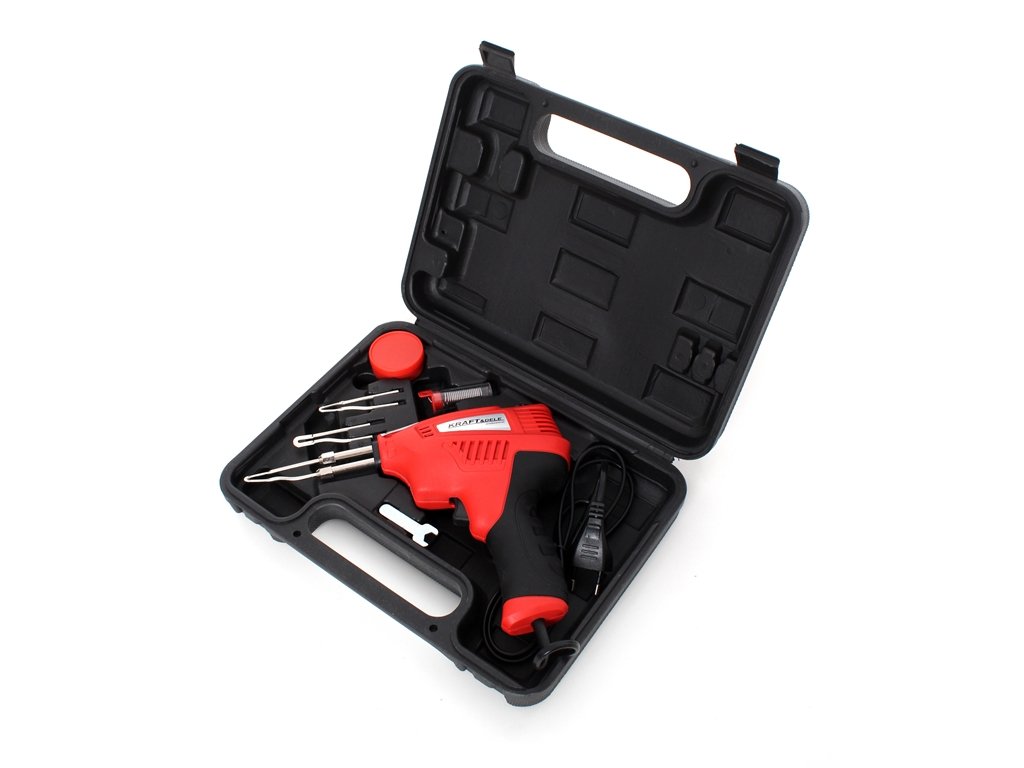 Spájkovačka 200W transformátorová v praktickom kufríku. Okamžité zahriatie hrotu spôsobí, že je spájkovačka pripravená na prácu po aktivácii spúšte (spínača) veľmi rýchlo.