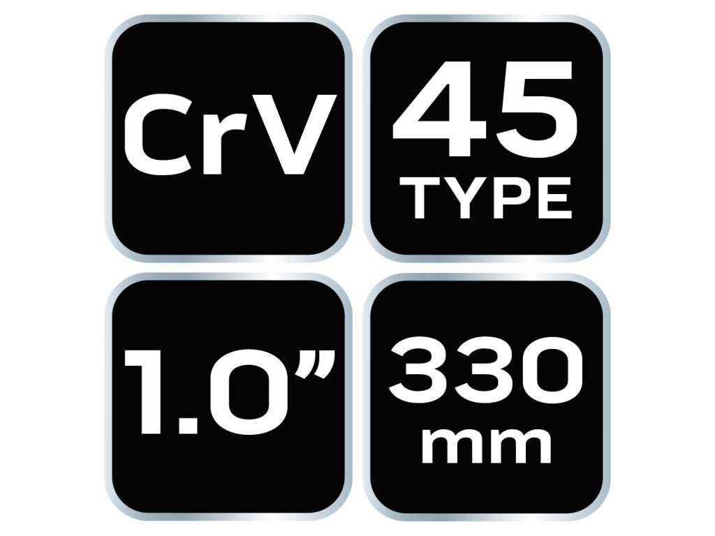 Kľúč na rúry typ "45°", dĺžka 330 mm, šírka čeľustí 1.0", chróm-vanádiová oceľ, kované a brúsené čeľuste, nastaviteľná skrutka, šnekový prevod, čeľuste so zubami