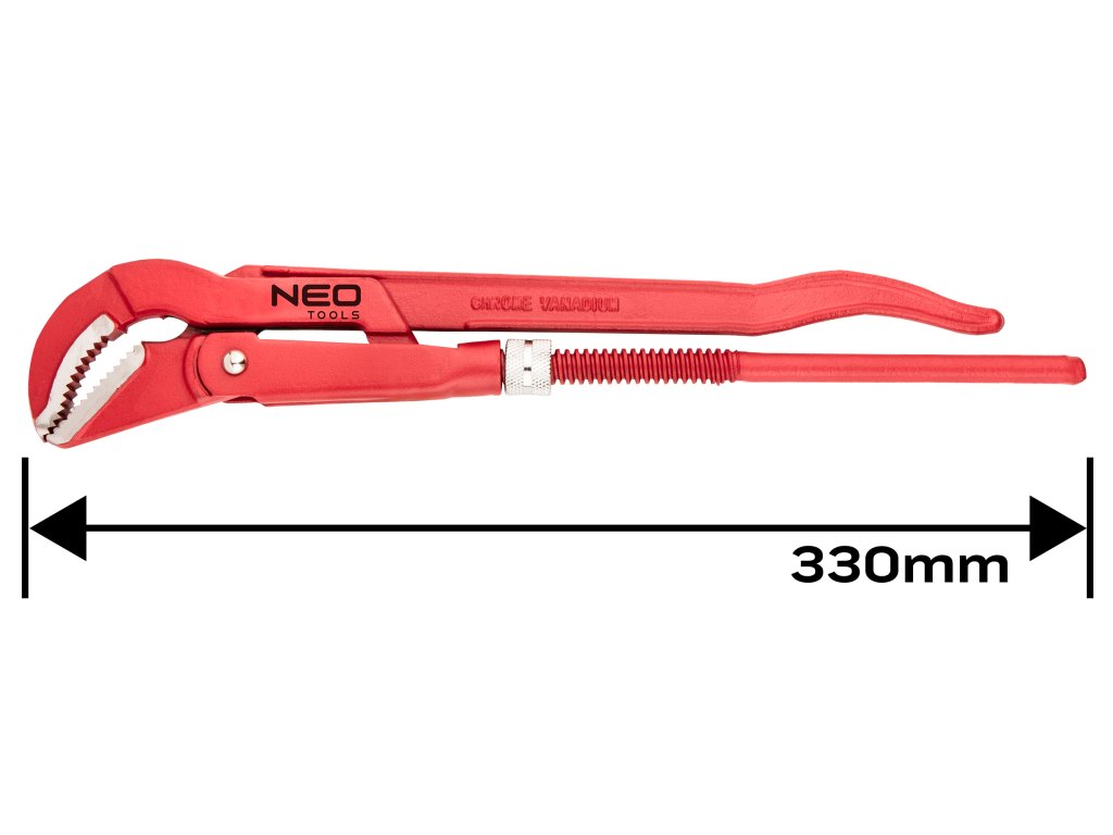 NEO kľúč na rúry typu "45" (ref. 02-426) s dĺžkou 330 mm. Určené na odskrutkovanie a utiahnutie potrubia a ventilov. Vďaka drážkovanej vnútornej strane čeľustí je uchopenie okrúhleho profilu pevné. Vyrobené z odolnej chróm-vanádiovej ocele, ktorá zaručuje dlhú životnosť nástroja. Značka NEO spĺňa očakávania profesionálov.