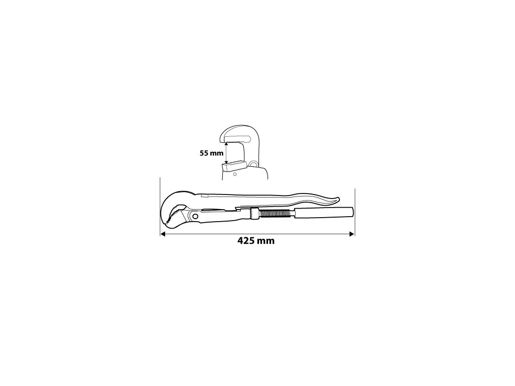 Kľúč na rúry typ 90°, 425 mm, 1.5°, kované, brúsené a leštené čeľuste, CrV oceľ, DIN5234, TÜV