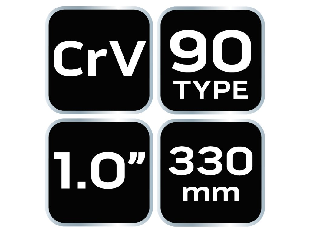 90° kľúč na rúry, dĺžka 330 mm, šírka čeľustí 1,0", chróm-vanádiová oceľ, čeľuste kované a brúsené, nastaviteľná skrutka, šnekový prevod, čeľuste so zubami
