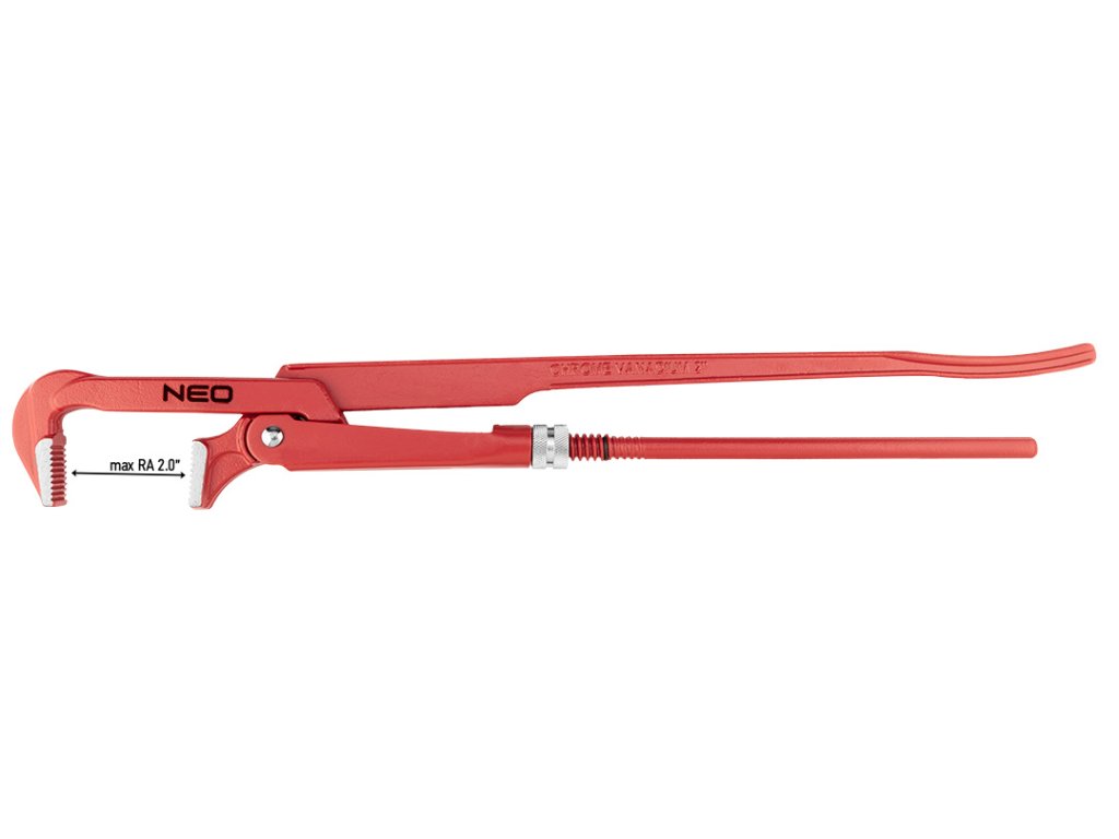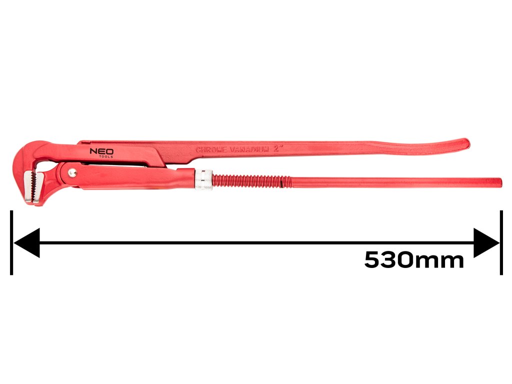 NEO kľúč na rúry typu "90" (ref. 02-425) s dĺžkou 530 mm. Určené na odskrutkovanie a utiahnutie potrubia a ventilov. Vďaka drážkovanej vnútornej strane čeľustí je uchopenie kruhového profilu pevné. Vyrobené z odolnej chróm-vanádiovej ocele, ktorá zaručuje dlhú životnosť nástroja. Značka NEO spĺňa očakávania profesionálov.