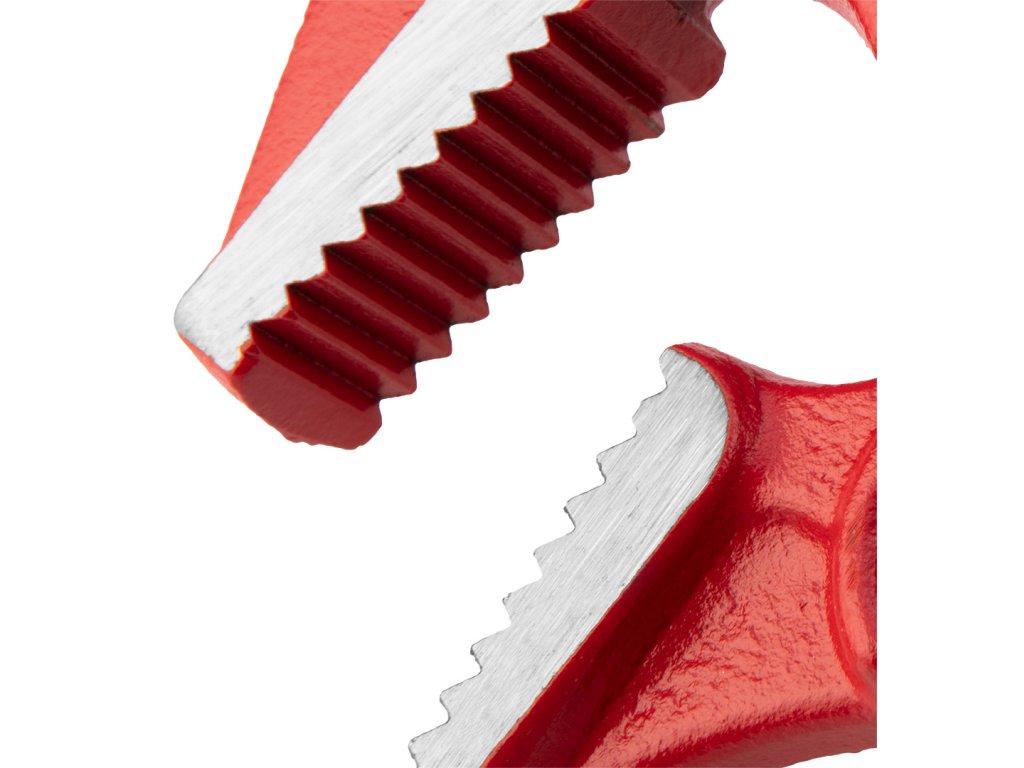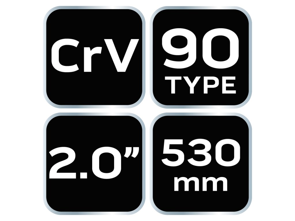 Kľúč na rúry typ "90°", dĺžka 530 mm, šírka čeľustí 2,0", chróm-vanádiová oceľ, kované a brúsené čeľuste, nastaviteľná skrutka, šnekový prevod, čeľuste so zubami
