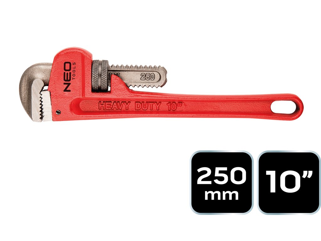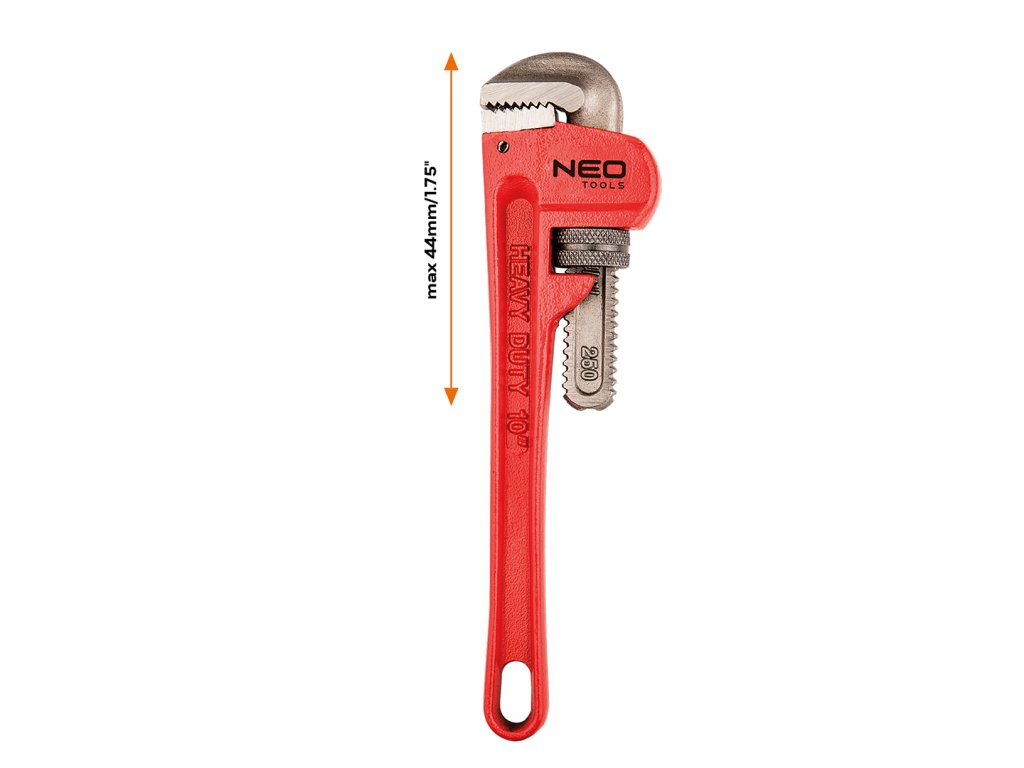 Kľúč na rúry NEO stillsonovho typu (ref. 02-415) s dĺžkou 250 mm a rozsahom do 44 mm. Určené na odskrutkovanie a utiahnutie potrubia a ventilov. Vďaka drážkovanej vnútornej strane čeľustí je uchopenie kruhového profilu pevné. Odolné kalené čeľuste so širokým prierezom umožňujú zvýšiť krútiaci moment. Značka NEO spĺňa očakávania profesionálov.