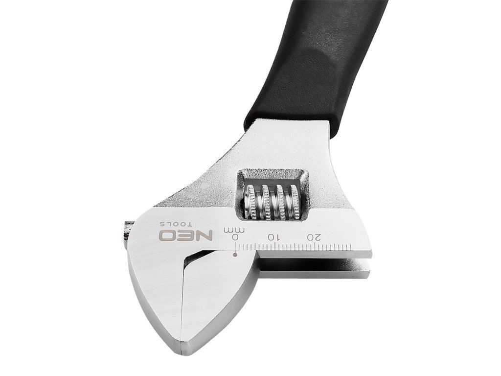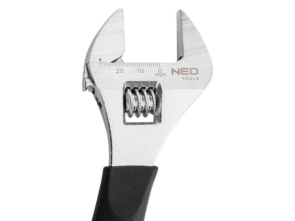 Nastaviteľný kľúč vyrobený z chróm-vanádiovej ocele. Vyznačuje sa vysoko presným závitovým prevodom, ktorý umožňuje rýchle nastavenie rozstupu čepelí. Ergonomická a pohodlná plastová rukoväť zlepšuje úchop a zaisťuje bezpečnosť práce. Dĺžka klieští je 200 mm a rozsah nastavenia čeľustí 0-28mm.