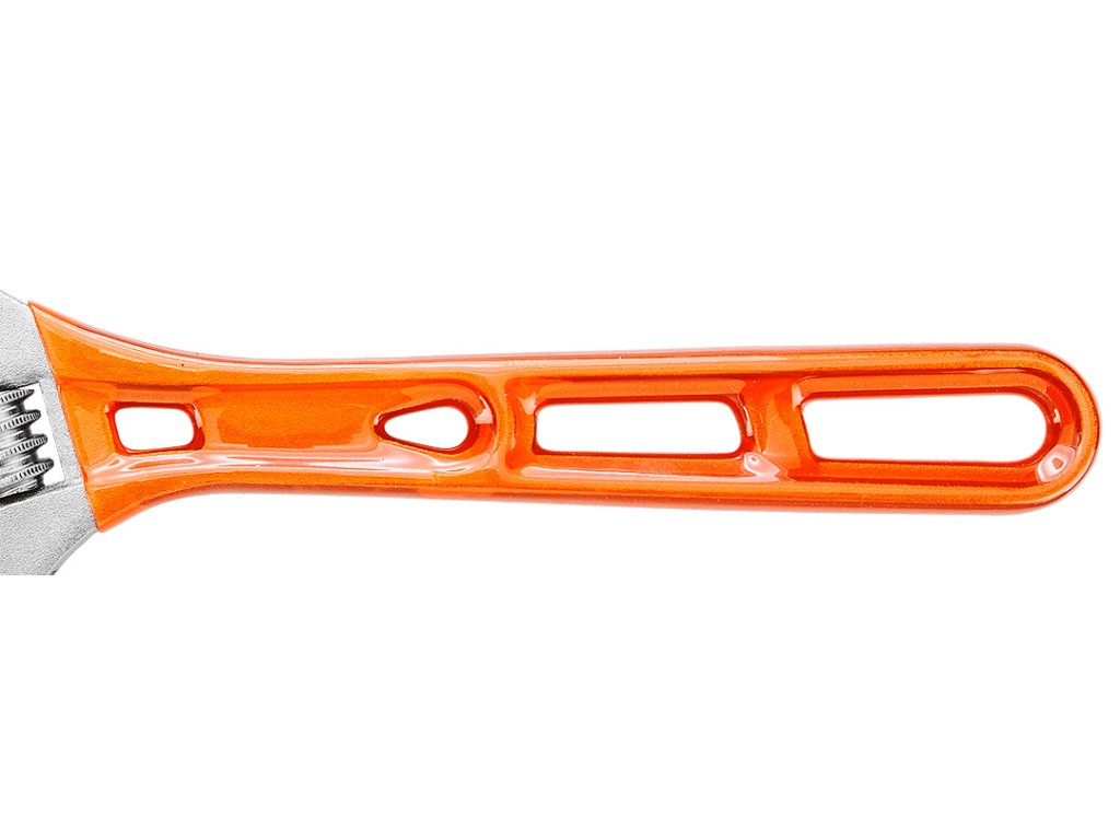 Nastaviteľný kľúč NEO s dĺžkou 205 mm a rozsahom 0-32 mm je vykovaný z robustnej chróm-vanádiovej ocele. Vyznačuje sa predĺženými profilovanými čeľusťami s veľmi širokým rozsahom nastavenia a malou hrúbkou hlavy kľúča, ktorá uľahčuje prácu na ťažko prístupných miestach. Kľúč má systém ochrany skrutkovaných prvkov - sila nesmeruje priamo na okraj skrutky alebo matice. Vďaka špeciálnej konštrukcii rukoväte je kľúč až o 30 % ľahší ako štandardný nastaviteľný kľúč. Protišmyková rukoväť potiahnutá plastom zaručuje bezpečné uchopenie a bezpečnú prácu. Kvalitu výrobku potvrdzuje 25-ročná záruka. Značka NEO spĺňa očakávania profesionálov.