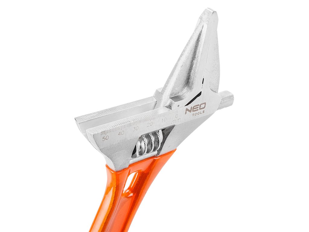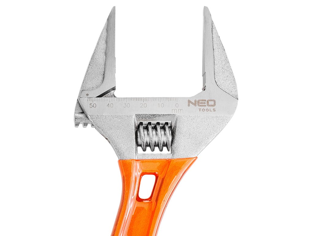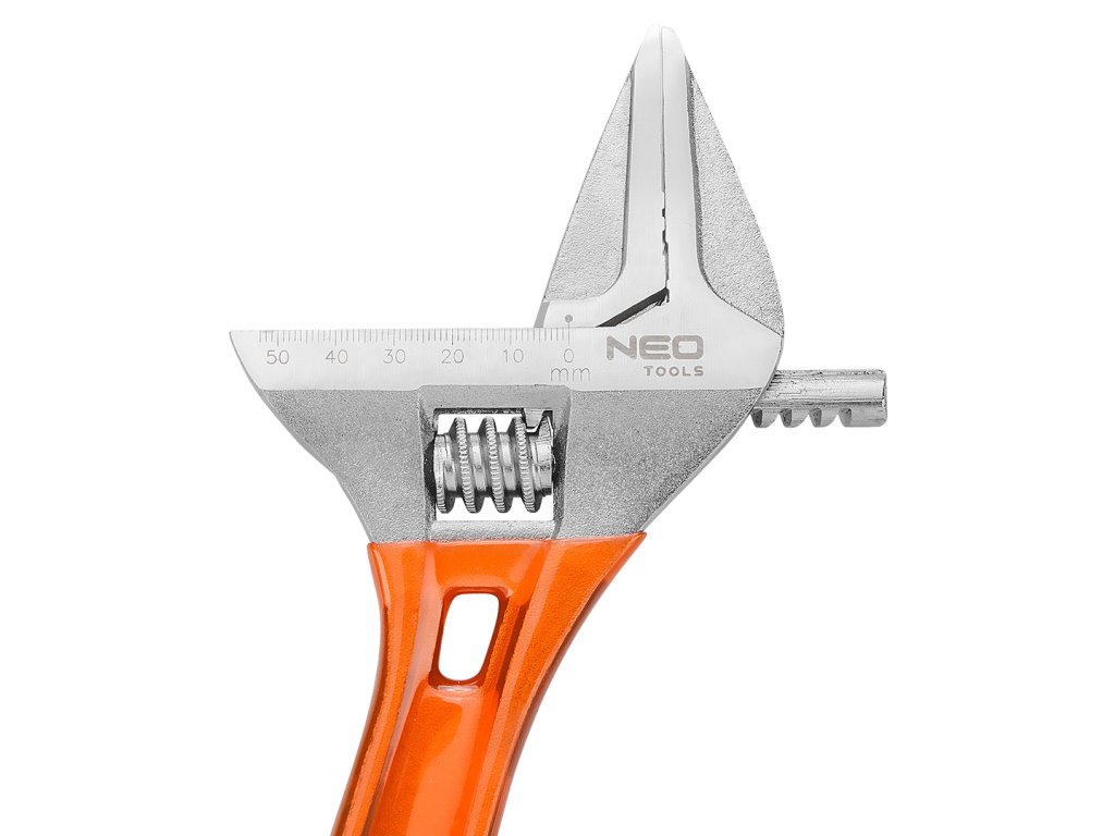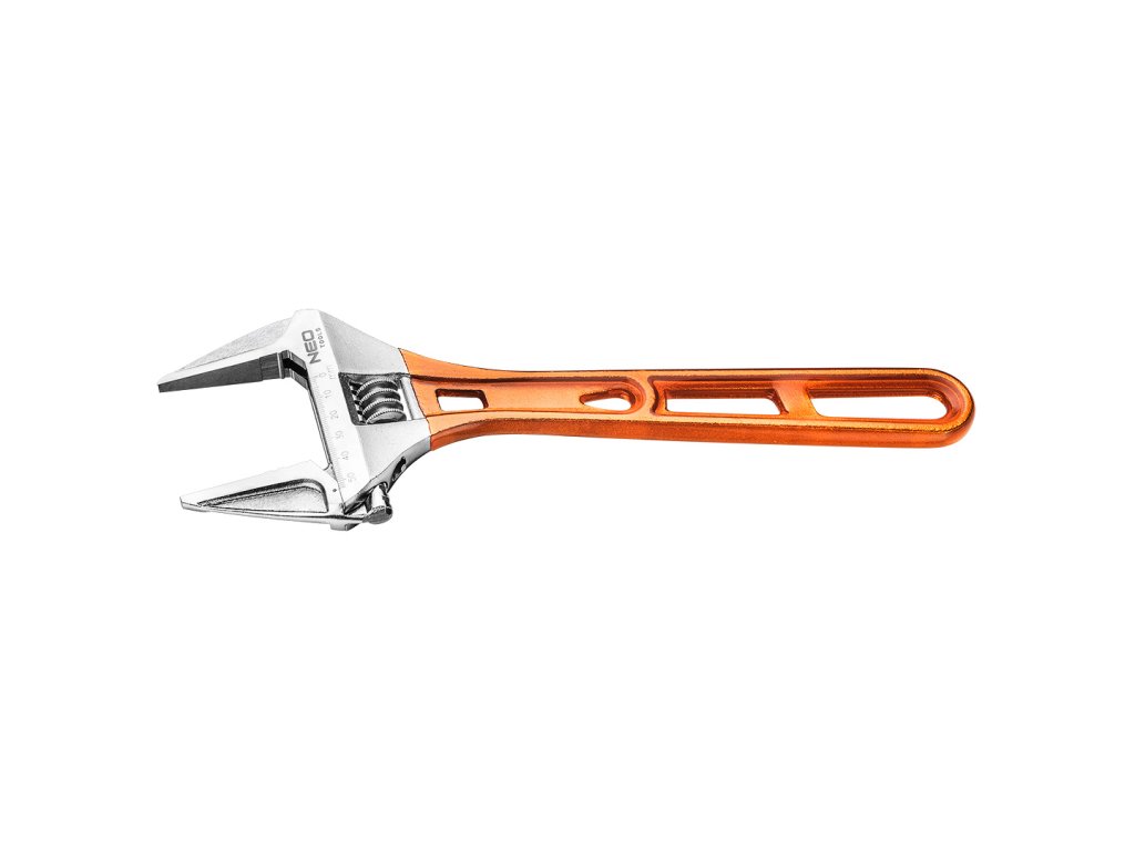 Nastaviteľný kľúč NEO s dĺžkou 306 mm a rozsahom 0-53 mm je kovaný z odolnej chróm-vanádiovej ocele. Vyznačuje sa predĺženými profilovanými čeľusťami s veľmi širokým rozsahom nastavenia a malou hrúbkou hlavy kľúča, ktorá uľahčuje prácu na ťažko prístupných miestach. Kľúč má systém ochrany skrutkovaných prvkov - sila nesmeruje priamo na okraj skrutky alebo matice. Vďaka špeciálnej konštrukcii rukoväte je kľúč až o 30 % ľahší ako štandardný nastaviteľný kľúč. Protišmyková rukoväť potiahnutá plastom zaručuje bezpečné uchopenie a bezpečnú prácu. Kvalitu výrobku potvrdzuje 25-ročná záruka. Značka NEO spĺňa očakávania profesionálov