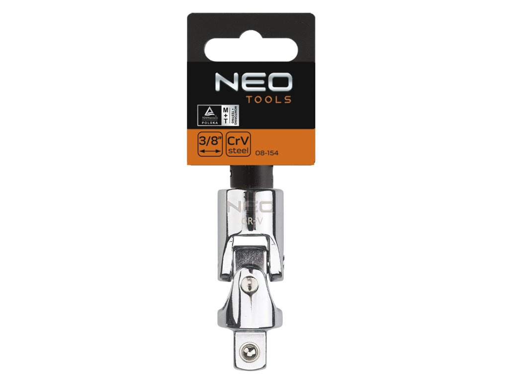 Univerzálny 3/8" kĺb NEO (ref. 08-154) vyrobený z odolnej chrómvanádiovej ocele podľa normy DIN 3123. Certifikát TÜV Rheinland zaručuje vysokú kvalitu a spoľahlivosť výrobku. Značka NEO spĺňa očakávania profesionálov.