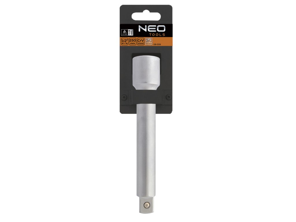 Predlžovacie rameno NEO 3/4" (ref. 08-350) s dĺžkou 100 mm. Vyrobené z odolnej chróm-vanádiovej ocele podľa normy DIN 3123. Kvalita nástroja potvrdená certifikátom TÜV a 25-ročnou zárukou výrobcu. Značka NEO spĺňa očakávania profesionálov.