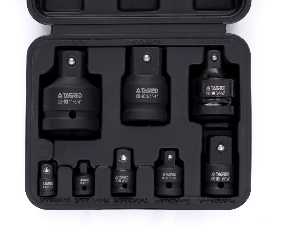 Praktická sada adaptérov redukcií pre nástrčné kľúče 1/2" 1/4" 3/8" 3/4" 8ks. Profesionálna sada nástrojov vyvinutá pre automobilové a mechanické práce.