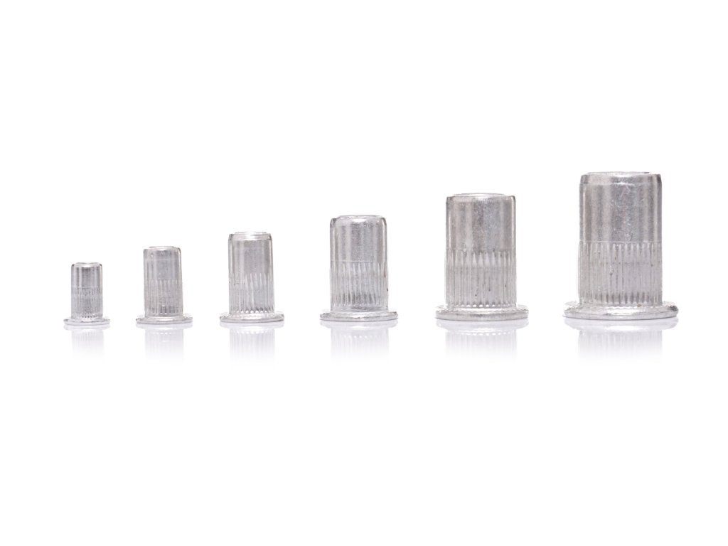 Hliníkové nitovacie matice vo veľkostiach od M3 do M10. Majú valcový, ryhovaný prírubový okraj, vďaka čomu pevnejšie priliehajú k upevňovanému prvku. Nitovacie matice TAGRED umožňujú zaskrutkovanie skrutky alebo skrutkovice s metrickým závitom do plechu alebo iných materiálov tam, kde nie je možné vytvoriť závit.