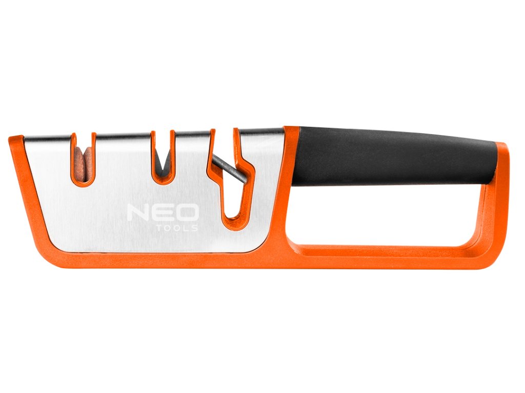 Brúska na nože a nožnice 56-053 od spoločnosti NEO je nástroj s puzdrom vyrobeným z nárazuvzdorného plastu ABC, čiastočne pokrytým nehrdzavejúcou oceľou a gumou TPR. Ponúka dvojstupňové brúsenie nožov - predbežné brúsenie pomocou karbidu volfrámu, ktorý dáva čepeli tvar, a záverečné leštenie keramikou. Umožňuje tiež ostrenie nožníc pomocou špeciálneho diamantového brúsneho kotúča. Ostrúhač je vybavený protišmykovou základňou a ergonomicky tvarovanou rukoväťou. Dodáva sa s návodom na použitie. Výrobky značky NEO sa odporúčajú na domáce a profesionálne použitie.