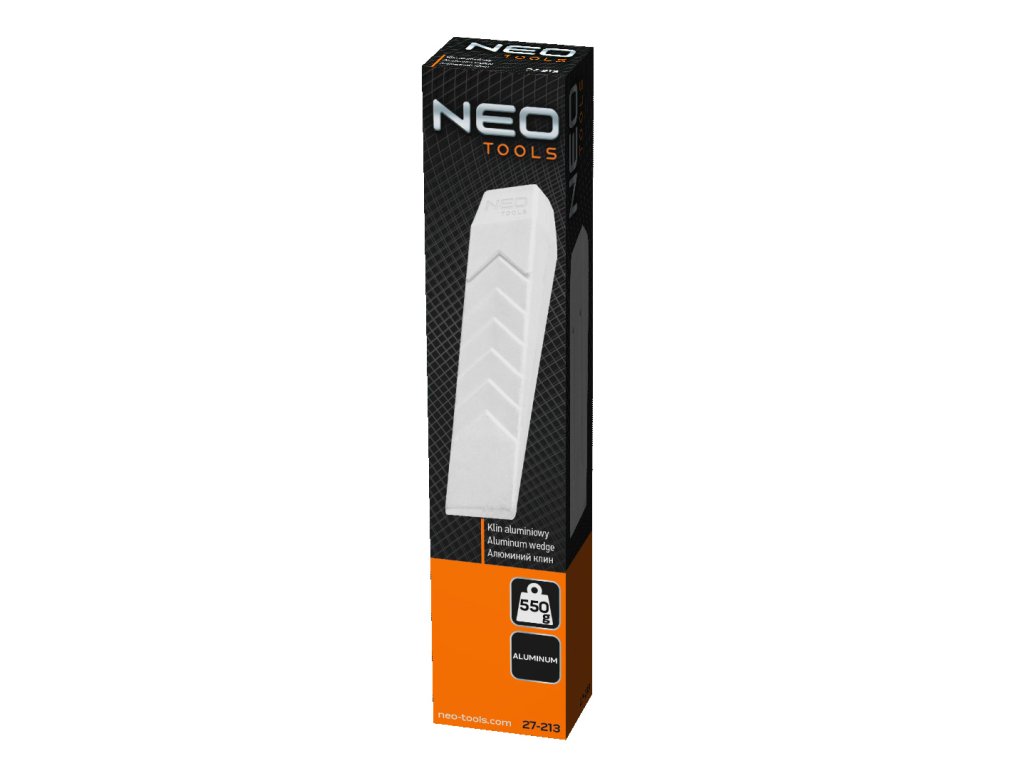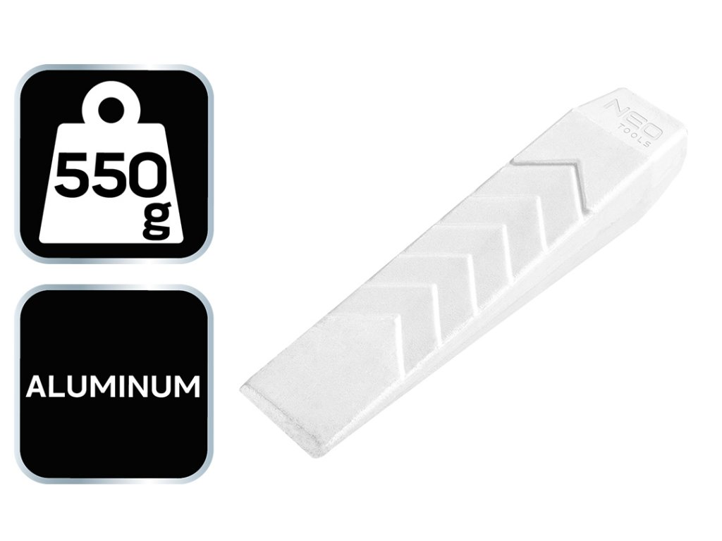 Hliníkový klin 27-213 od spoločnosti NEO s hmotnosťou 550 g je určený na štiepanie dreva. Má hmotnosť 550 g. Trvácny, odolný proti deformáciám, vyrobený z hliníka, je určený na dlhoročné používanie. Zodpovedajúci profilovaný povrch zabraňuje spätnému posunu dreva. Klin značky NEO je určený na dlhoročné používanie a osvedčí sa v každej domácnosti, na pozemku, v záhrade aj pri lesných prácach.