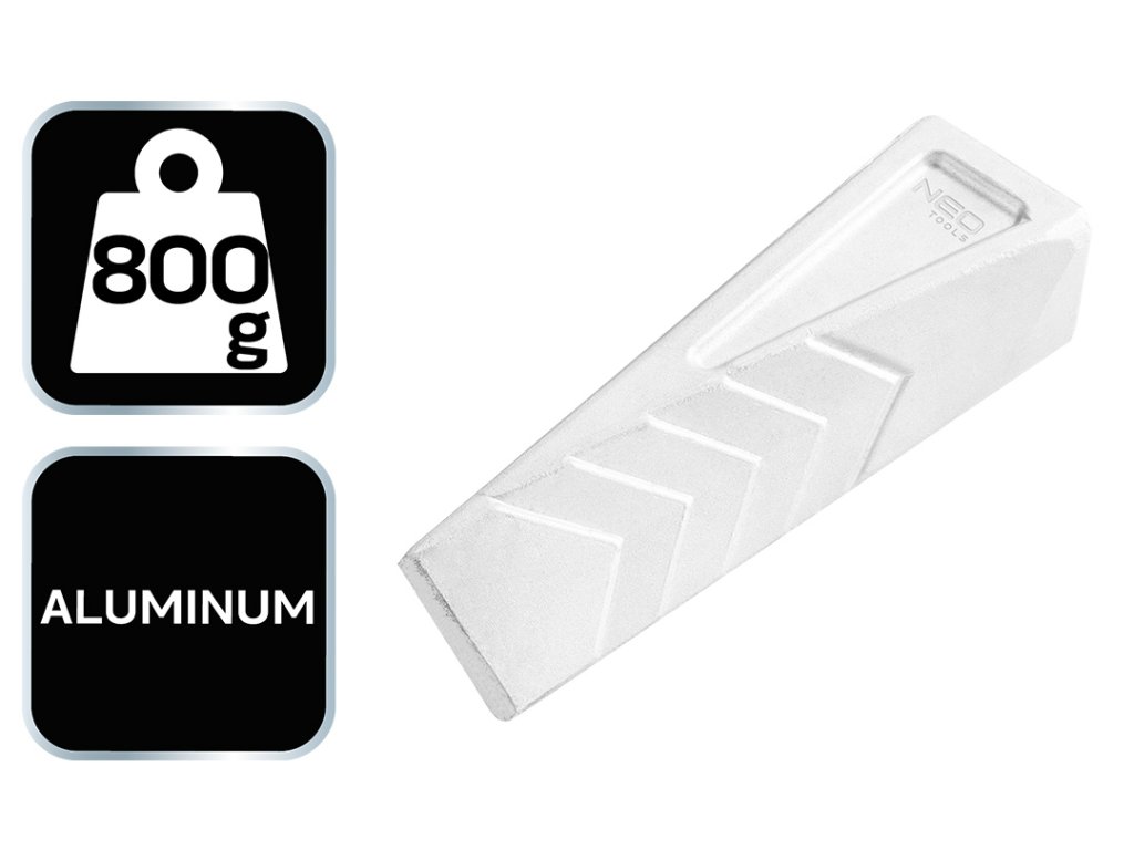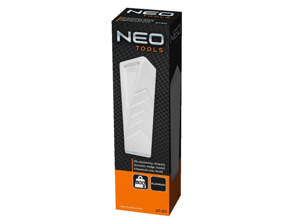 Hliníkový klin s hmotnosťou 800 g, skrútený 27-211 od spoločnosti NEO, je určený na štiepanie dreva. Má hmotnosť 800 g. Trvácny, odolný proti deformáciám, vyrobený z hliníka, je určený na dlhoročné používanie. Zodpovedajúci profilovaný povrch zabraňuje spätnému posunu dreva. Klin značky NEO je navrhnutý na dlhoročné používanie a osvedčí sa v každej domácnosti, na pozemku, v záhrade a pri lesných prácach.