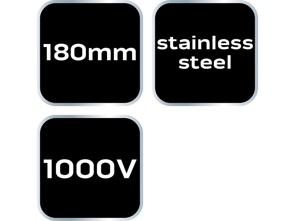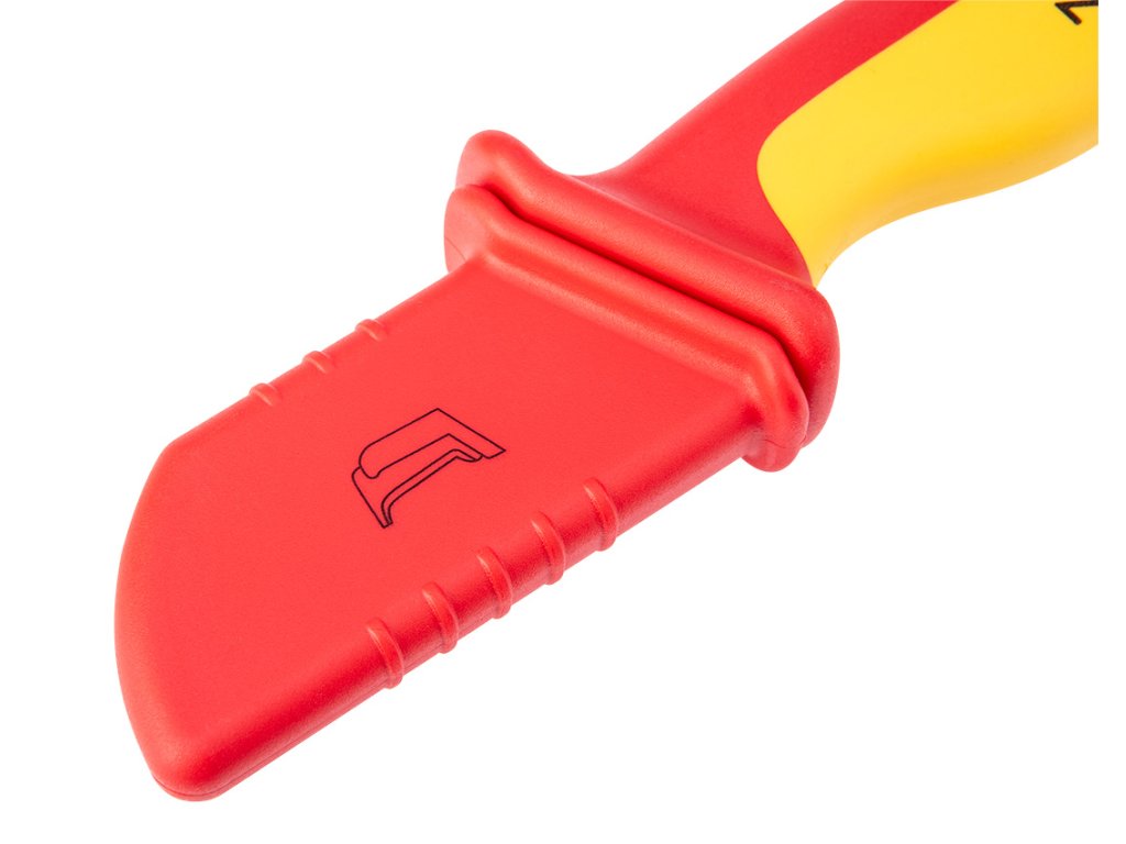 Montážny nôž 1000V, 180 mm, tvrdosť čepele 51-53 HRc, 2-zložková rukoväť, ochranná krytka čepele, CrV oceľ, izolačná doska na čepeli