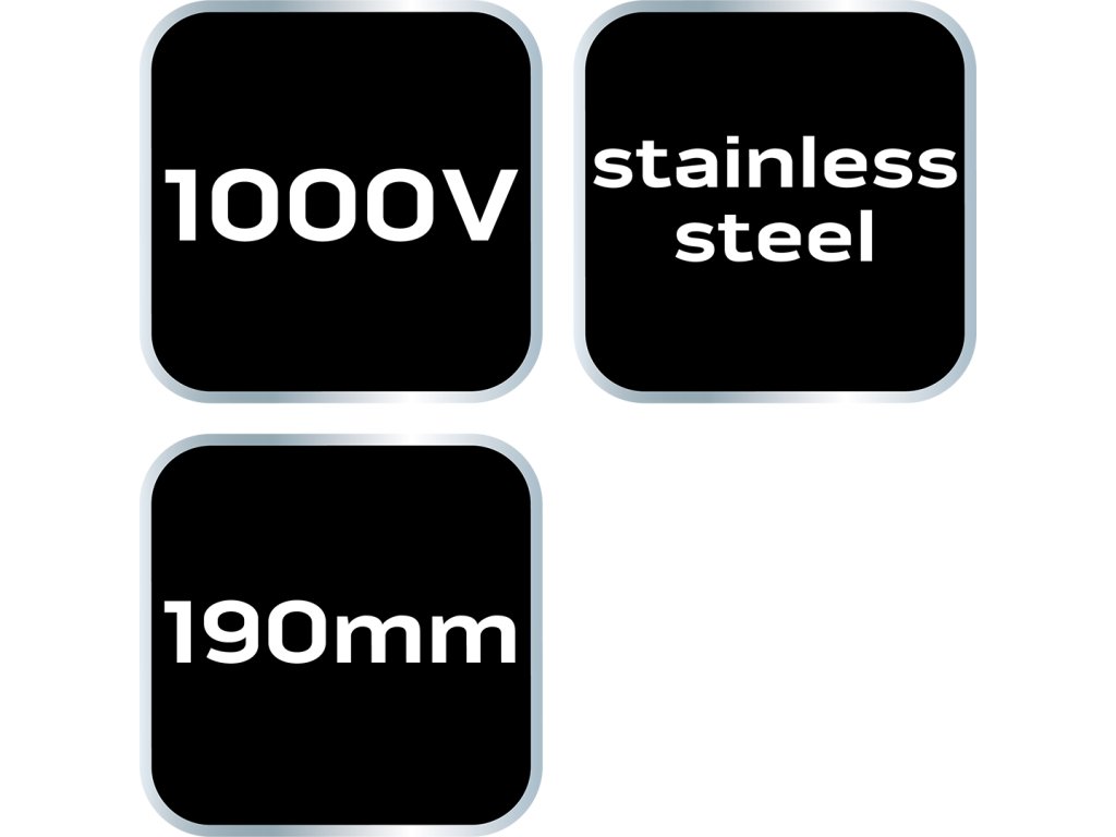Montážny nôž 1000V, 190 mm, tvrdosť čepele 51-53 HRc, 2-zložková rukoväť, ochranná krytka čepele, CrV oceľ