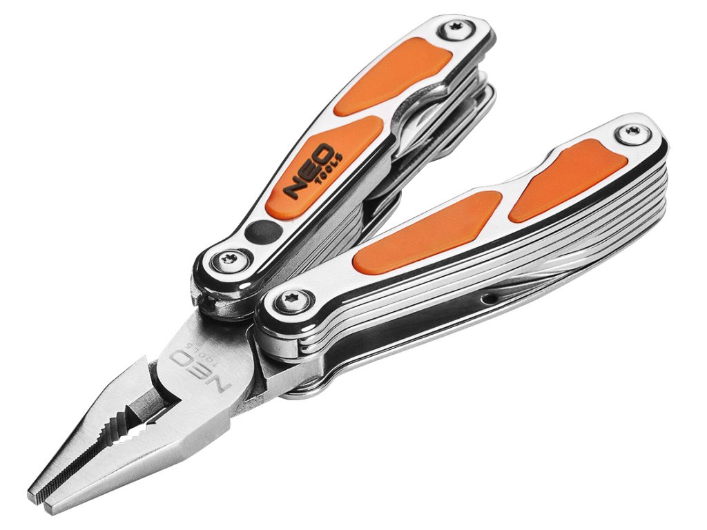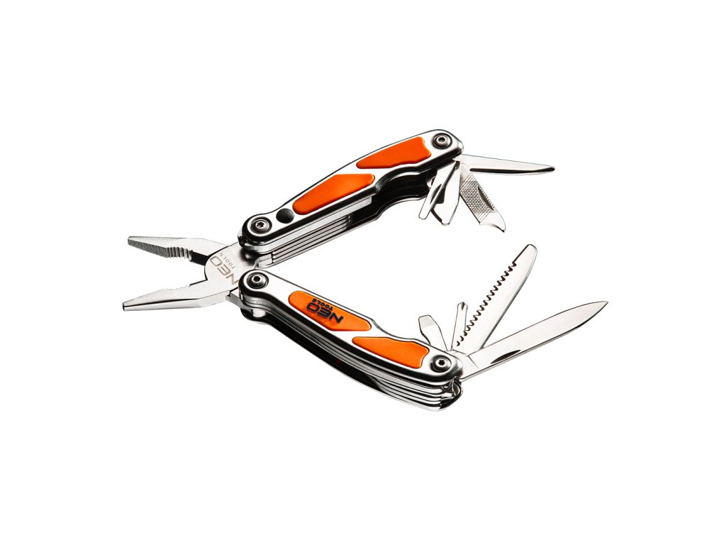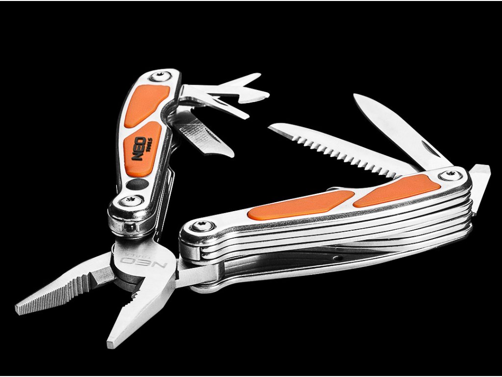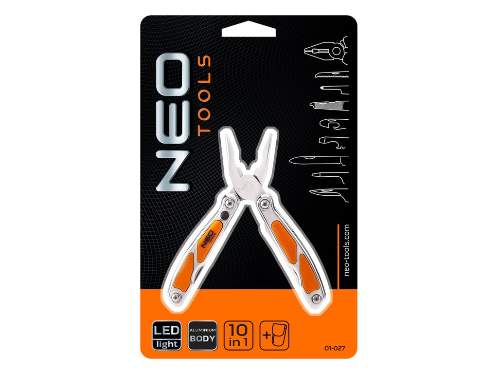 Multifunkčné náradie NEO (ref. 01-027) je inovatívne riešenie. V jednom nástroji nájdete 10 rôznych funkcií vrátane najobľúbenejšieho skrutkovača PH2, ostrého noža potrebného v mnohých situáciách a otvárača na konzervy a fľaše, ktorý je potrebný na mnohých kempovaní. Sú uložené v praktickom puzdre z odolného nylonu na jednoduchú prepravu a skladovanie. Značka NEO spĺňa očakávania profesionálov.