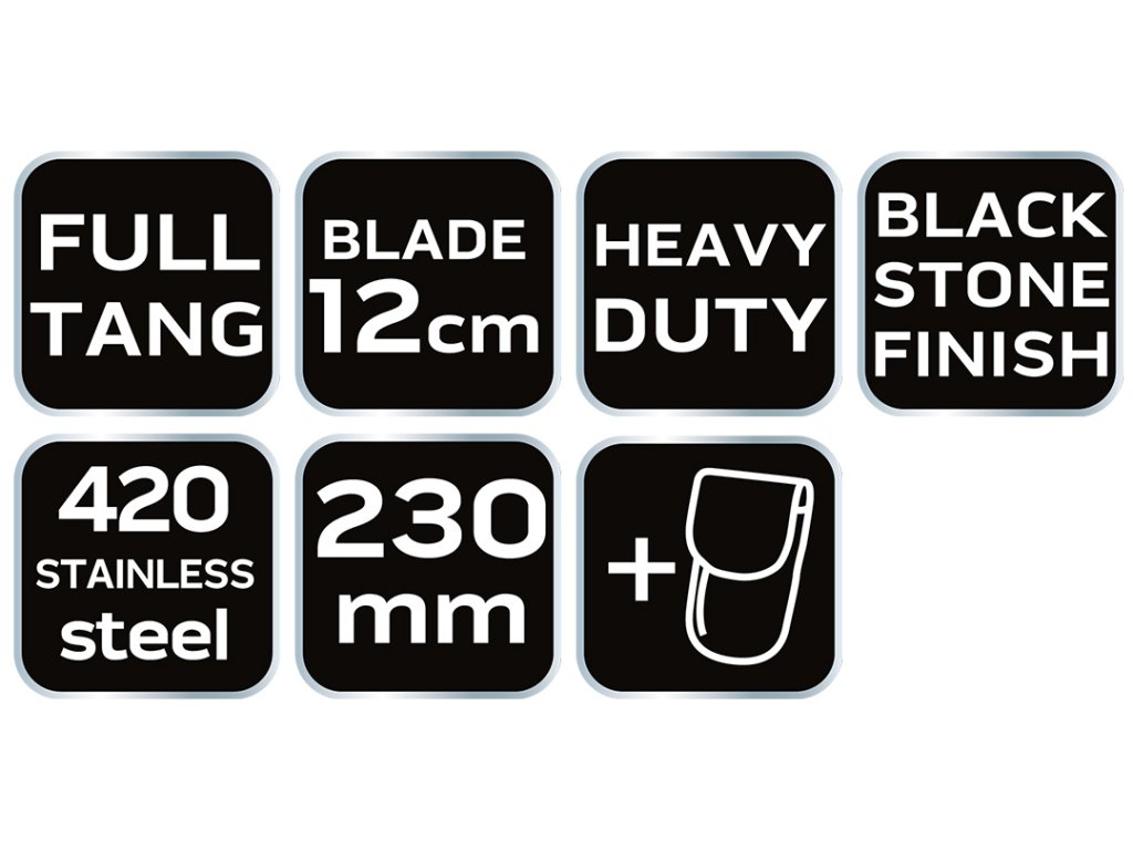 Nôž na prežitie full-tang 23 cm 63-111 dĺžka 25 cm s čepeľou 14,5 cm. Nožík je vyrobený z kvalitnej nehrdzavejúcej ocele s puzdrom na opasok.