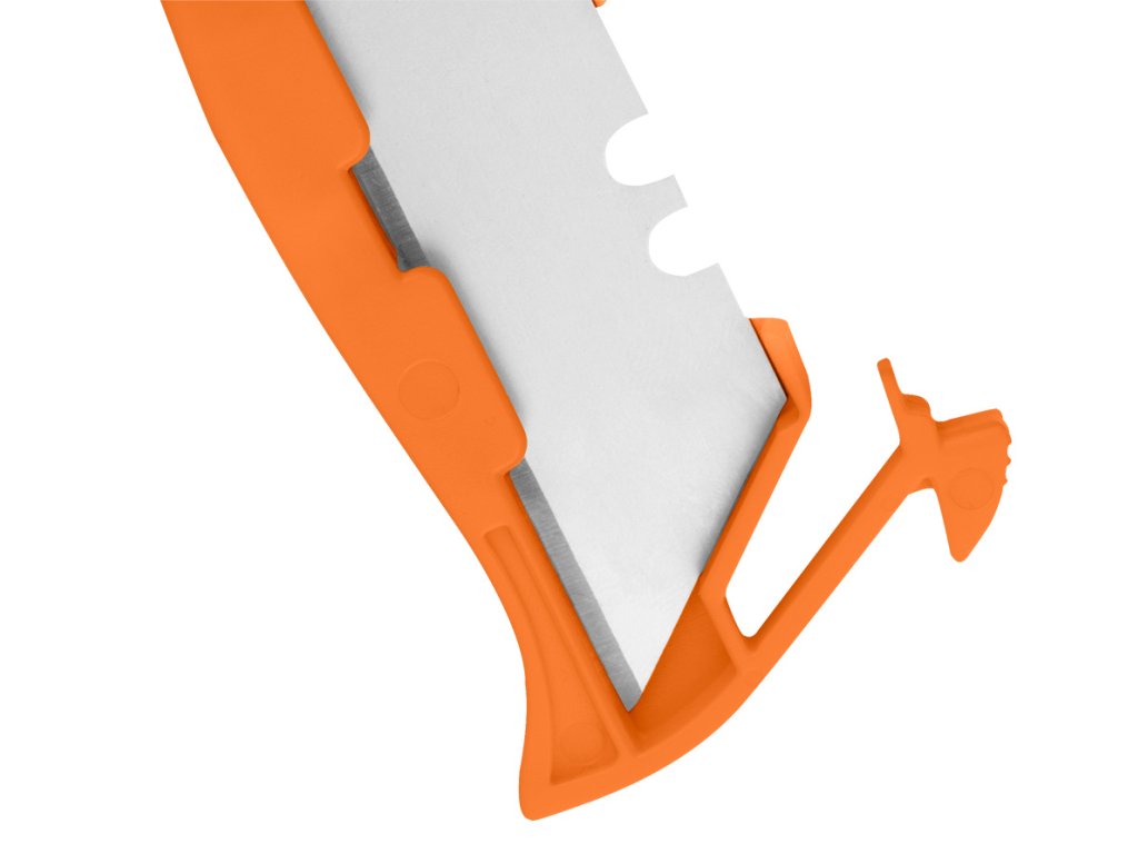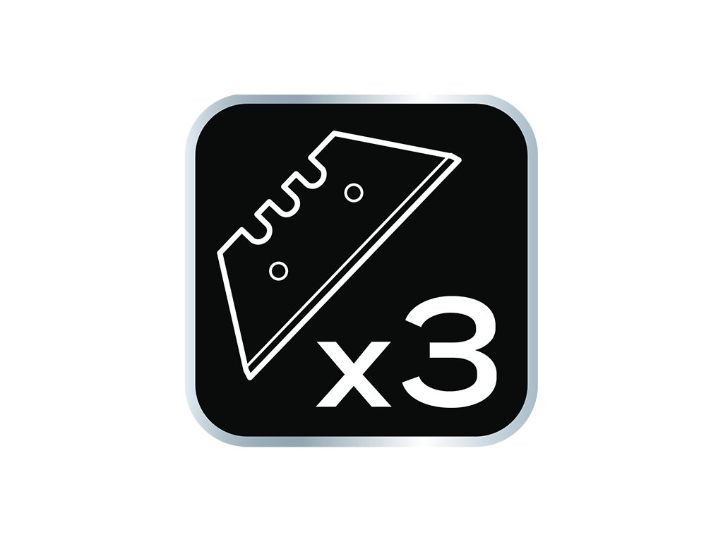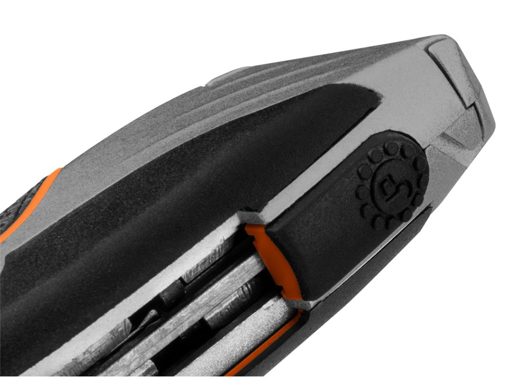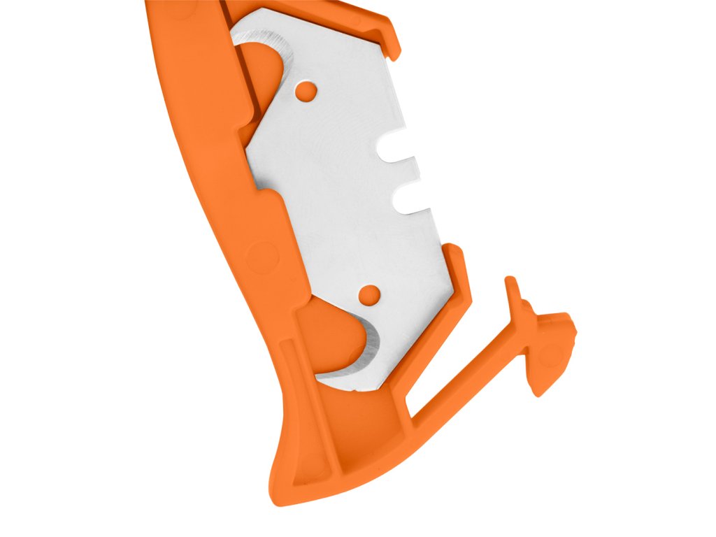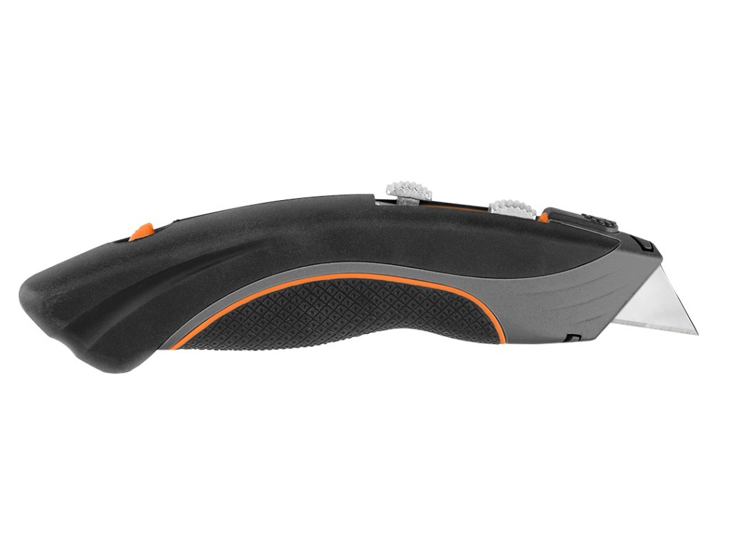 Nôž s lichobežníkovou a hákovou čepeľou ľahké a odolné telo zo zinkovej zliatiny, dva druhy čepelí pripravené na použitie (háková a lichobežníková), aretácia čepele, zásobník na náhradné čepele - s aretáciou, 3 hákové čepele (2 náhradné), 3 lichobežníkové čepele (2 náhradné), dvojzložková rukoväť - vrátane TPR pre zvýšený komfort práce, mechanizmus rýchlej a jednoduchej výmeny čepele, rozmer 179x48,5x29mm.