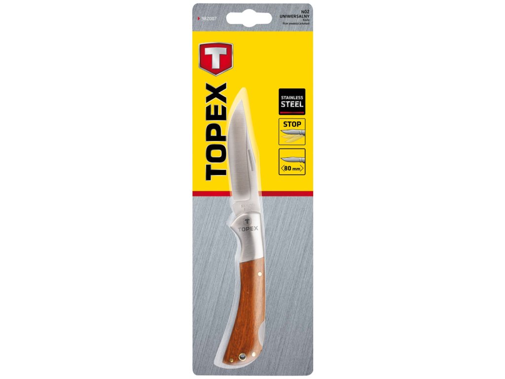 Univerzálny skladací nôž s celkovou dĺžkou 19,5cm a dĺžkou čepele 8cm a dreveným dekórom na rukoväti. Nožík má ergonomickú rukoväť.