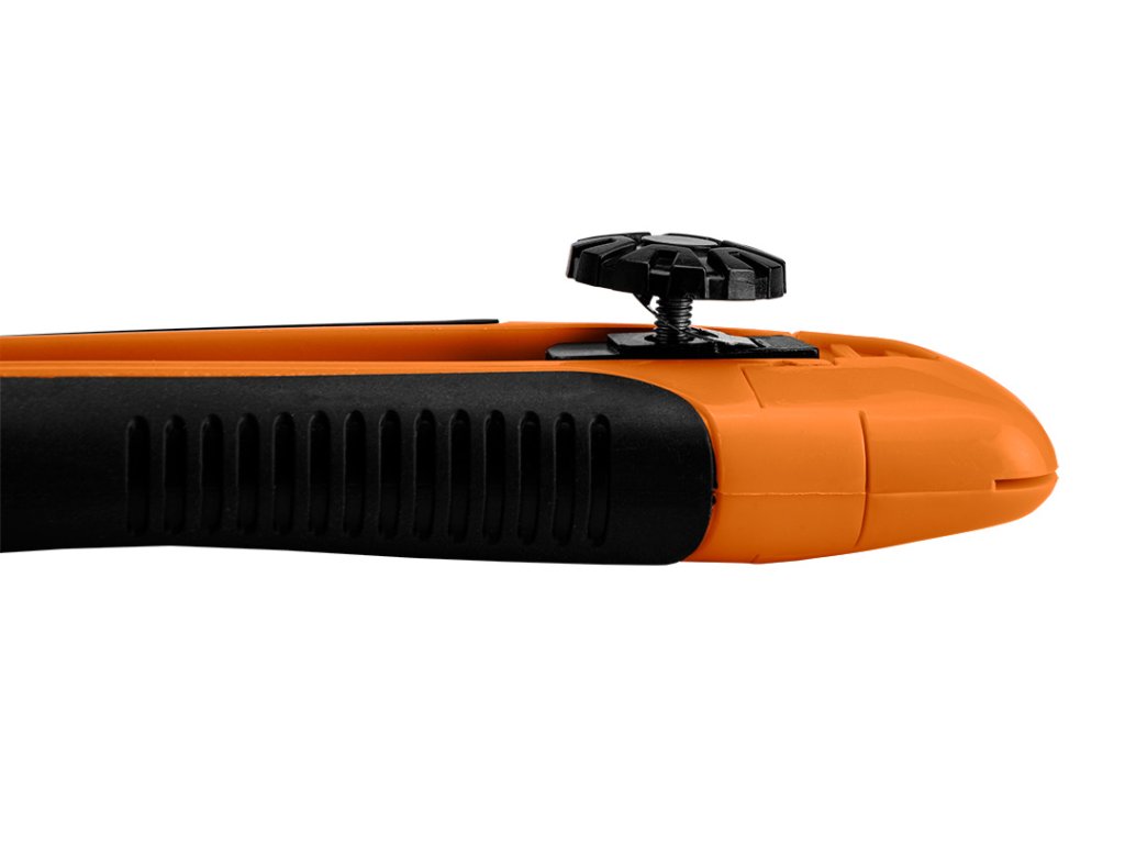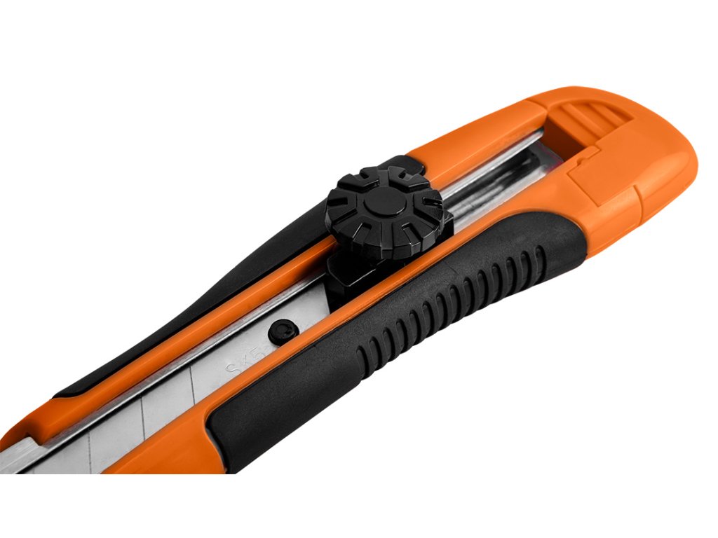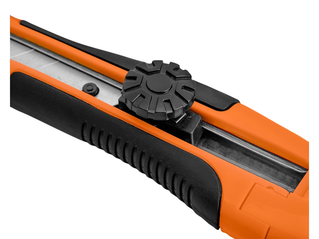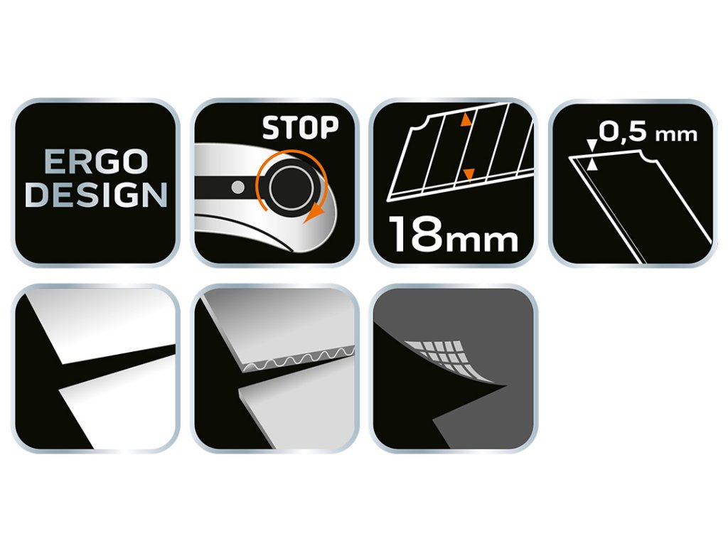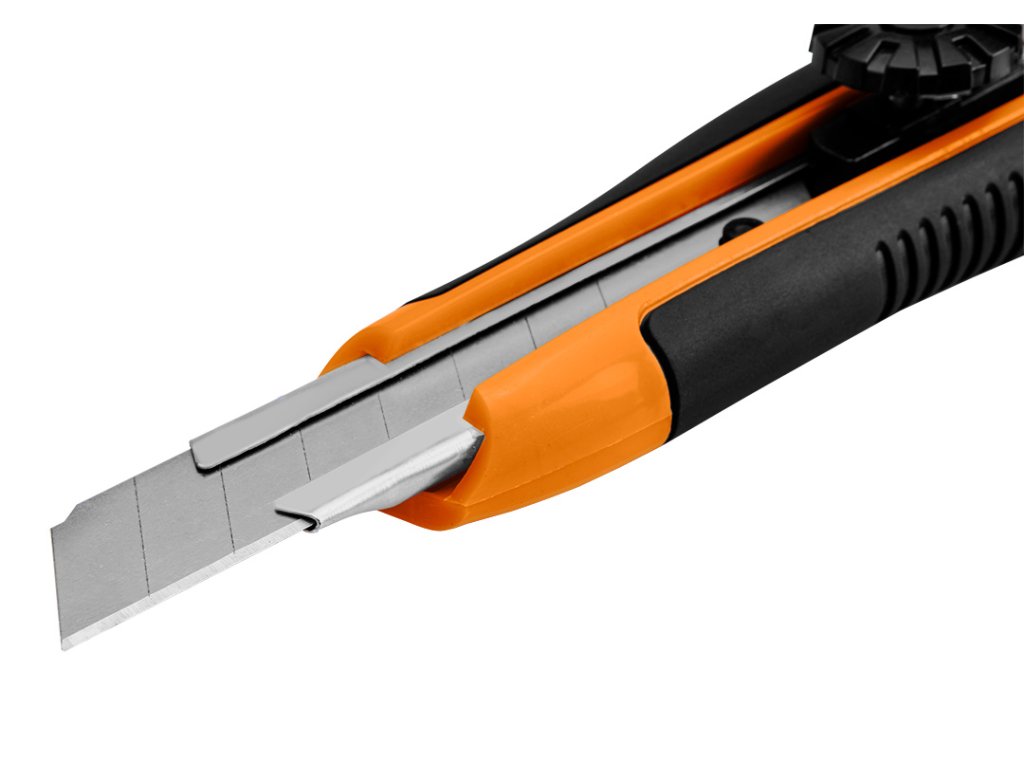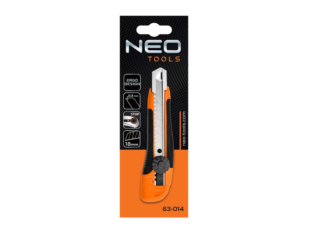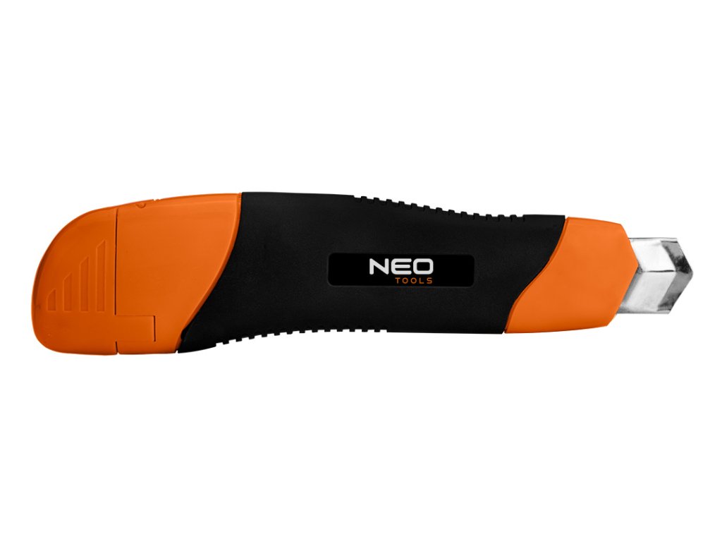 NEO skladací nôž na použitie s 18 mm širokou čepeľou. Veľmi užitočné na mechanické práce a kutilstvo. Kovová vodiaca lišta zaručuje dlhú životnosť. Telo ergonomického tvaru z pevného plastu, pokryté protišmykovým materiálom, dobre padne do ruky, čo zaručuje bezpečnosť a pohodlie pri práci. Značka NEO spĺňa očakávania profesionálov.