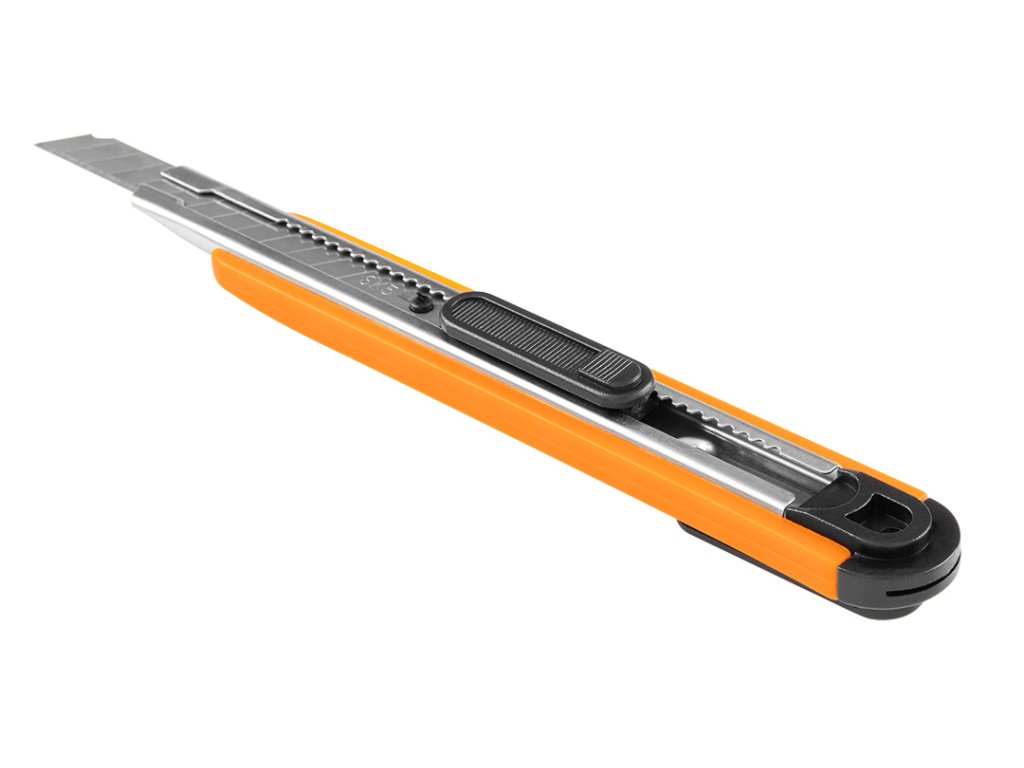 NEO skladací nôž na použitie s 9 mm širokou čepeľou. Veľmi užitočné na mechanické práce a kutilstvo. Telo je vyrobené z kvalitného plastu. Kovová vodiaca lišta pre dlhú životnosť. Vďaka malým rozmerom sa ľahko skladuje a prepravuje. Značka NEO spĺňa očakávania profesionálov.