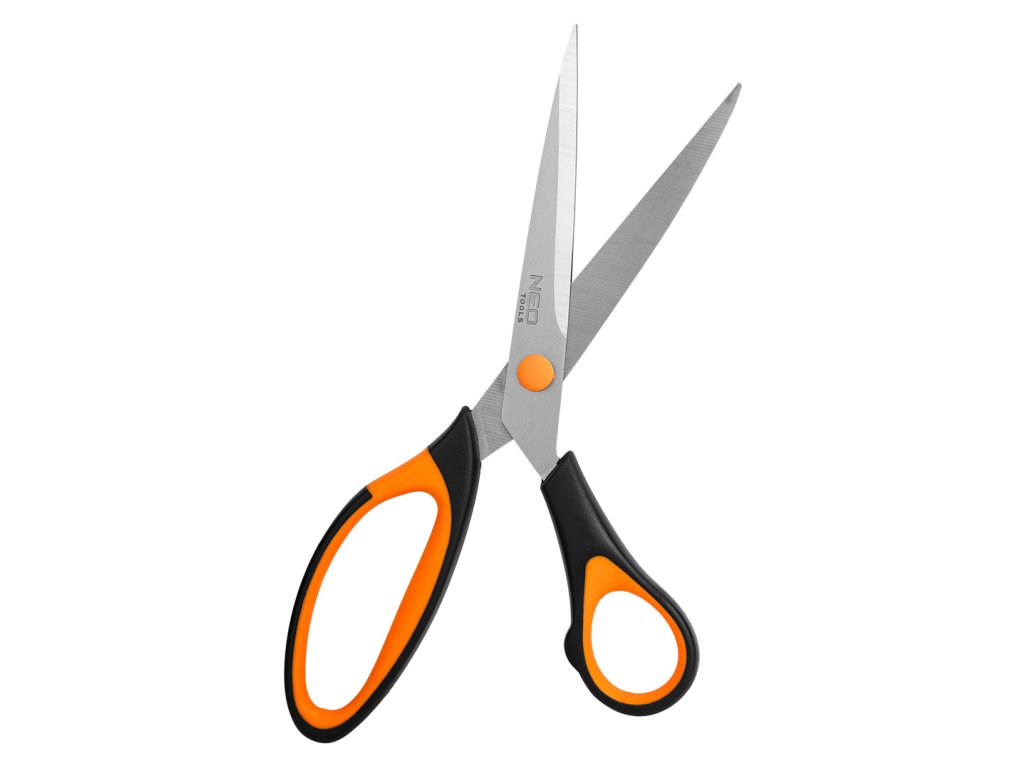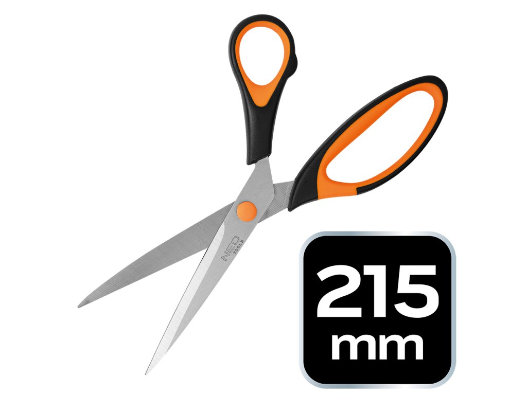 Nožnice 215 mm 64-005 od NEO TOOLS sú nožnice s dĺžkou 215 mm, ktoré sa vyznačujú dvojzložkovou rukoväťou a čepeľami z tvrdenej nehrdzavejúcej ocele. Odporúčajú sa na univerzálne použitie, doma, v škole, dielni alebo v dielni.