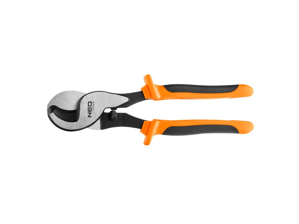 Rezačka na medené a hliníkové káble NEO (ref. 01-515) 225 mm, vyrobená podľa DIN5749. Kalené čeľuste reže do maximálneho priemeru 25 mm. Vysokokvalitná chróm-vanádiová oceľ zaisťuje dlhodobú odolnosť čeľustí. Ergonomická rukoväť z dvoch materiálov pre väčšie pohodlie. Kvalitu nástroja potvrdzuje certifikát TÜV a 25-ročná záruka výrobcu. Značka NEO spĺňa očakávania profesionálov.