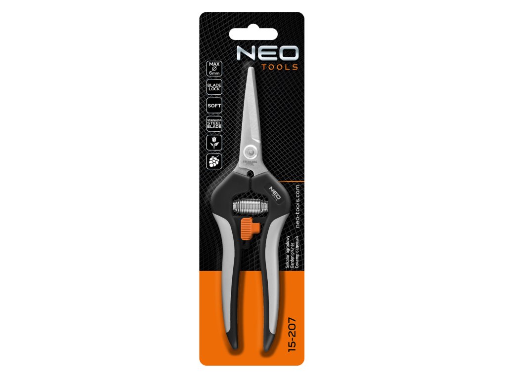 Prerezávač mladých výhonkov 185 mm, rozsah do 6 mm 15-207 od spoločnosti NEO TOOLS je jednoručný nástroj na použitie v domácnosti alebo na záhrade, vhodný na chúlostivé menšie rastliny, ktoré si vyžadujú osobitnú presnosť. Výrobok je vybavený dvojicou tvrdených, kalených čepelí z nehrdzavejúcej ocele, navyše zakončených mikrohrotmi. Má bezpečnostné tlačidlo, ktoré sa aktivuje jedným prstom. Ergonomické rukoväte sú vyrobené z kvalitného plastu a pokryté mäkkými komponentmi pre väčšie pohodlie. Nožnice sú určené na rastliny s maximálnym priemerom 6 mm. Výborne sa bude hodiť na profesionálne aj amatérske použitie.