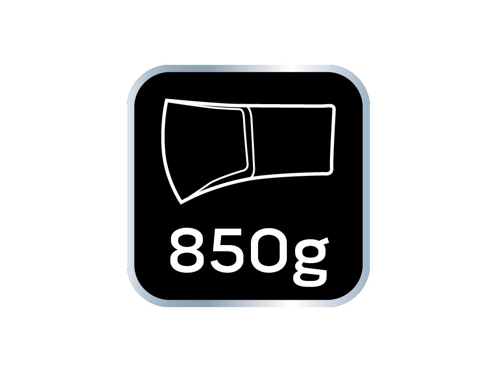 Univerzálna sekera, celková hmotnosť 1200 g, hmotnosť hlavy 850 g, porisko zo skleného vlákna a TPR, hlava pokrytá teflónom, celková dĺžka 600 mm, plastový háčik.