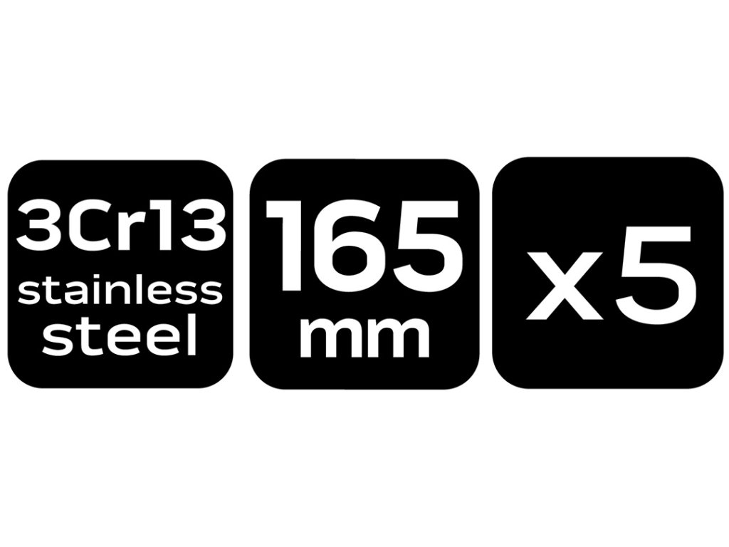 Skladací nôž 16,5 cm, násobok 5, materiál: nehrdzavejúca oceľ 3Cr13, dĺžka čepele 65 mm, celková dĺžka 160 mm, zabudovaný klip na opasok, poistka proti neočakávanému zatvoreniu.