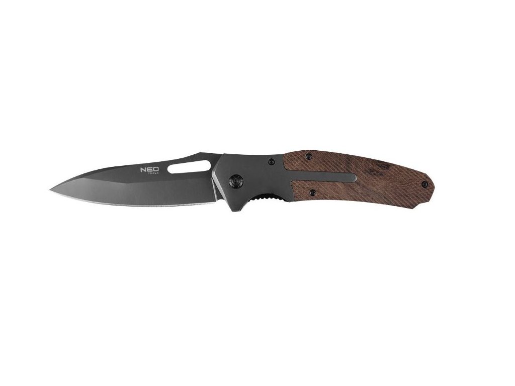 Skladací zatvárací nôž 63-115, NEO, dĺžka 22 cm a čepeľ 11 cm. Vďaka spone na opasok je skladací nožík je vždy pripravený po ruke. Čepeľ je vyrobená z kvalitnej nehrdzavejúcej ocele.