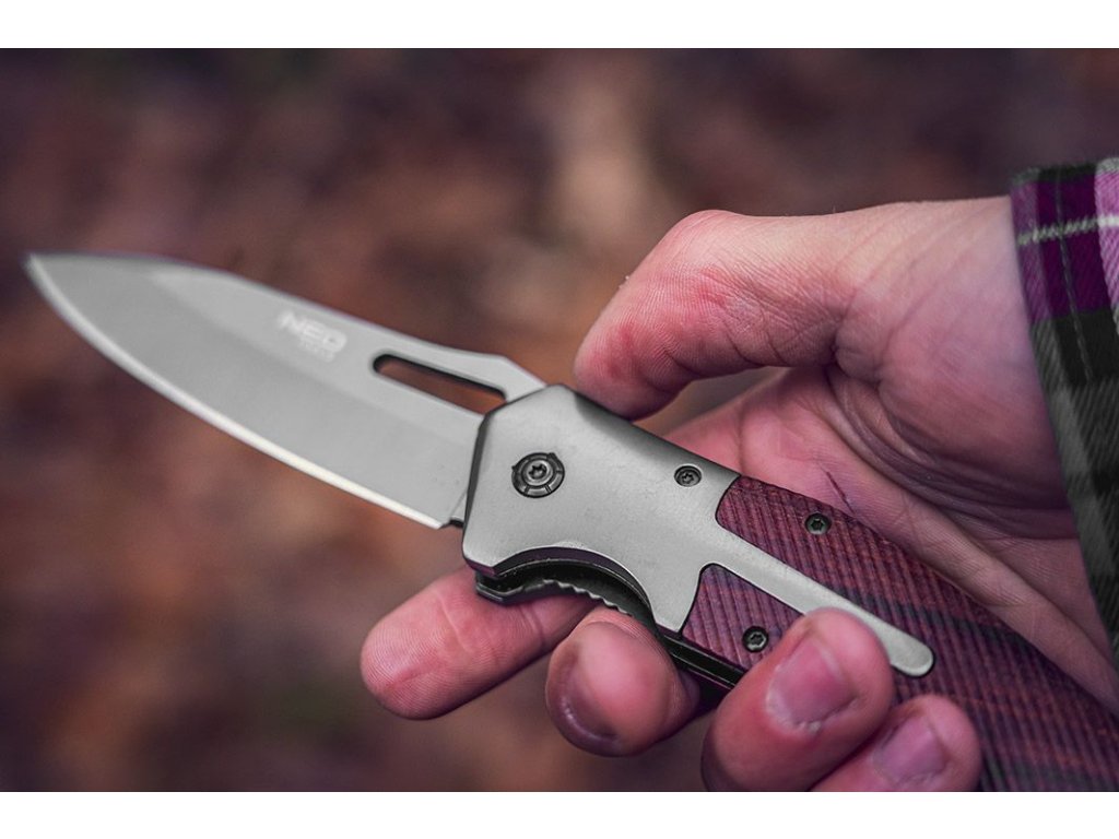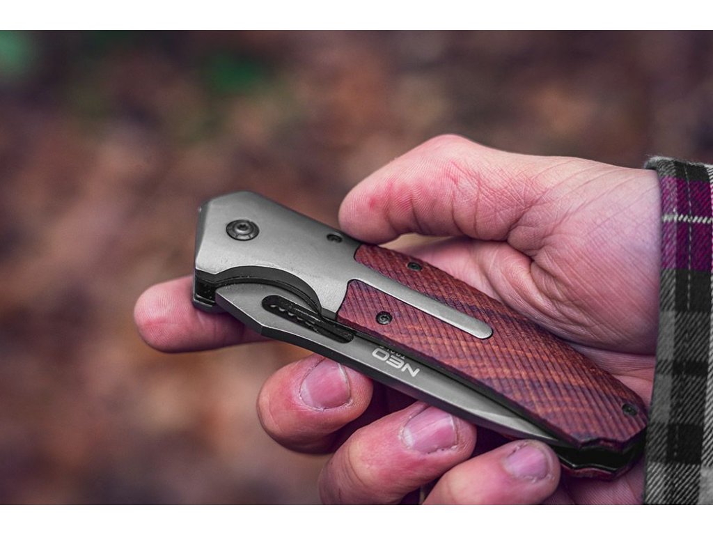 Skladací nôž značky NEO má celkovú dĺžku 22 cm z toho čepeľ predstavuje 11 cm. Pri výrobe čepele bola použitá nehrdzavejúca oceľ, ktorá je navyše chránená matnou farbou. Nôž je vybavený sponou na opasok, čo znamená, že ho môžete mať vždy po ruke.