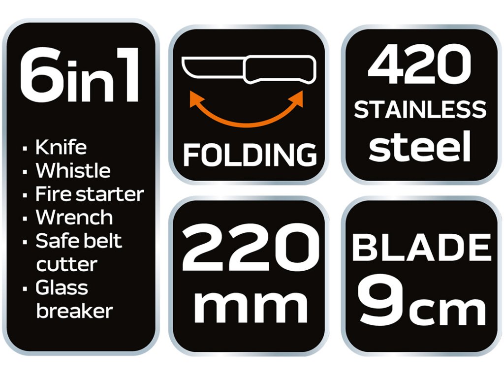 Skladací nôž na prežitie 22 cm, 6 v 1 63-107